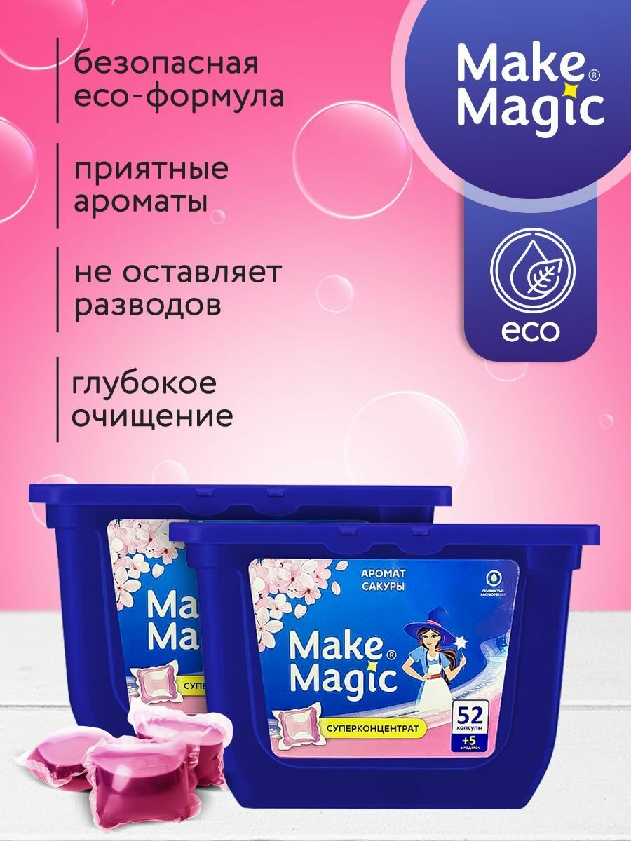 Капсулы для стирки Make Magic, 3в1, универсальные, 57шт 472 ₽