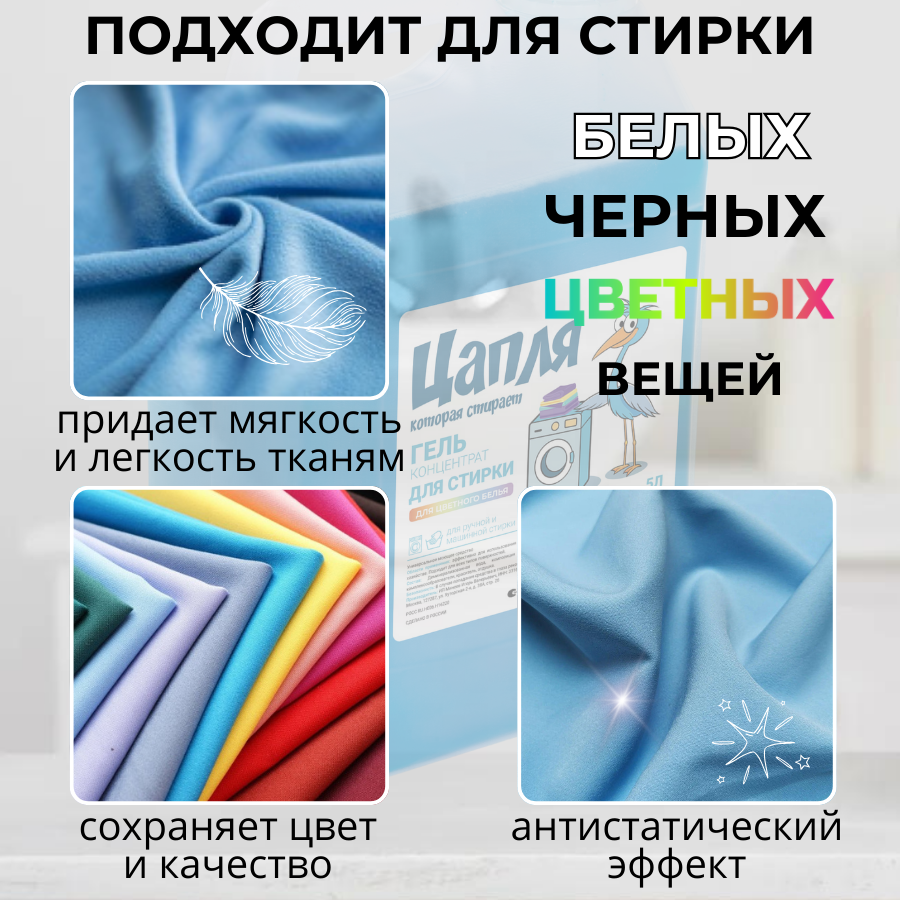 Характиристики этого товара не найдены!Отзывы на Гель для стирки Цапля, универсальный, концентрированный, для всех типов тканей, 5л