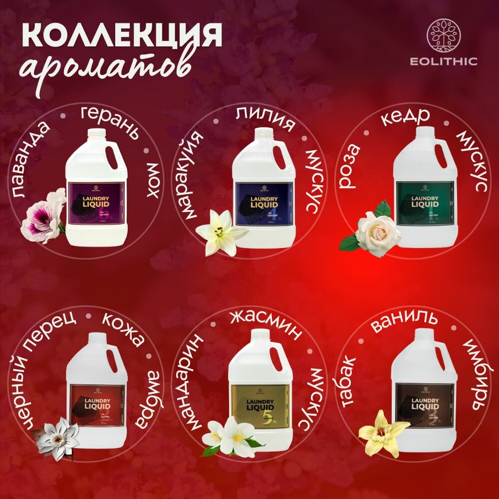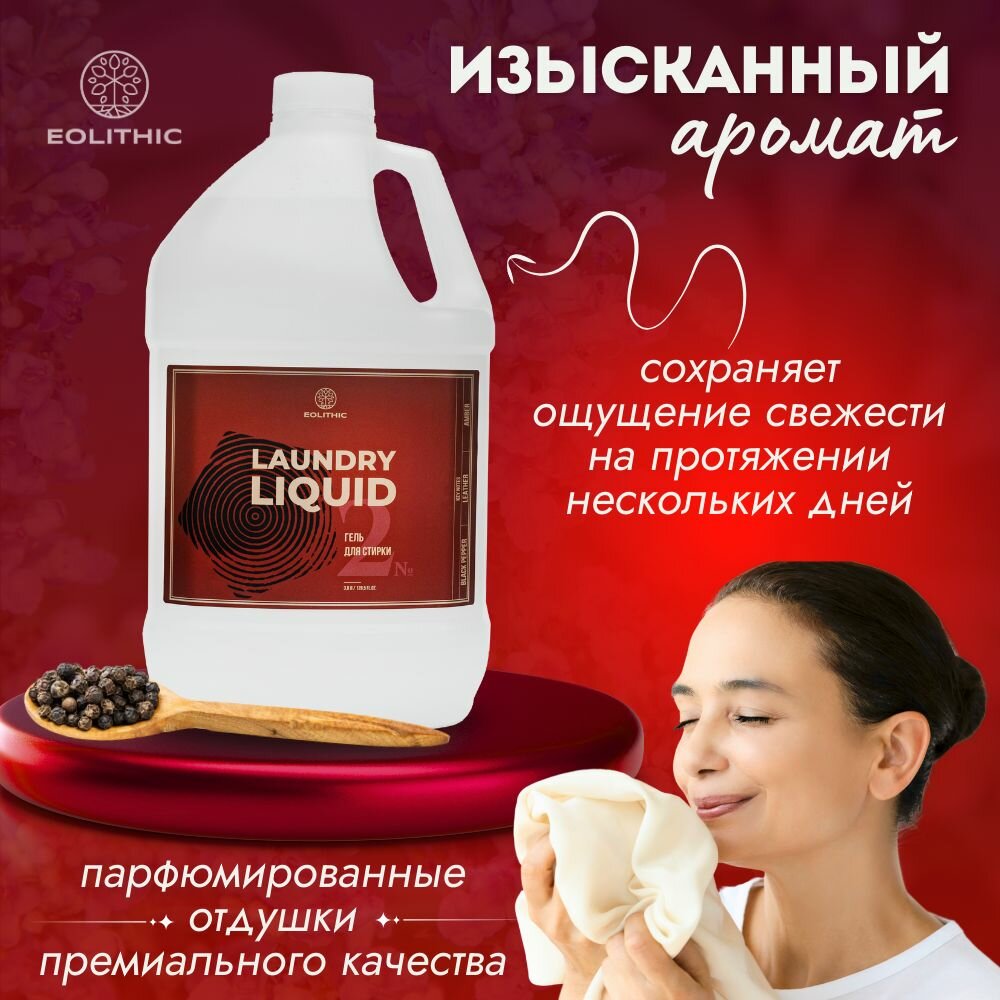 10 цен на Гель для стирки белья универсальный EOLITHIC LAUNDRY LIQUID №2 -Черный перец / Кожа / Амбра 3,8 л