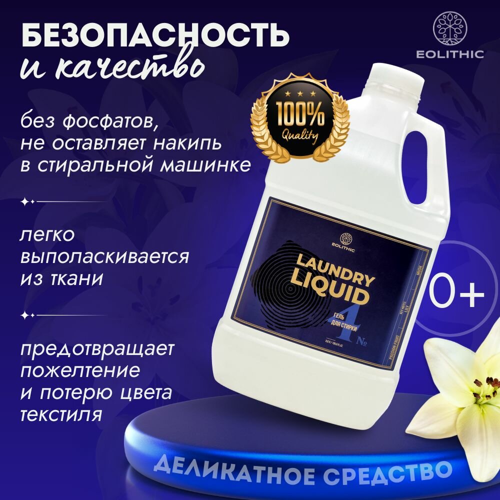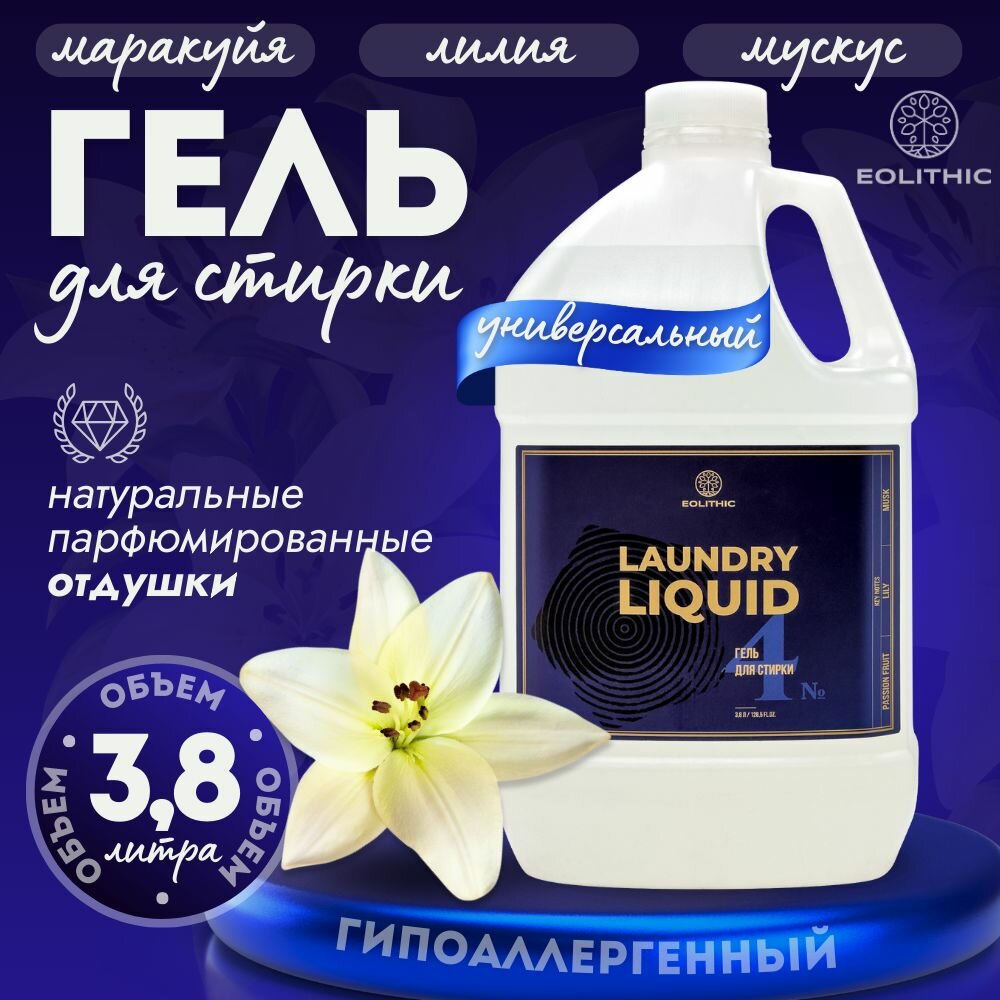 Гель для стирки белья универсальный EOLITHIC LAUNDRY LIQUID №4 Маракуйя / Лилия / Мускус 3,8л. информация: