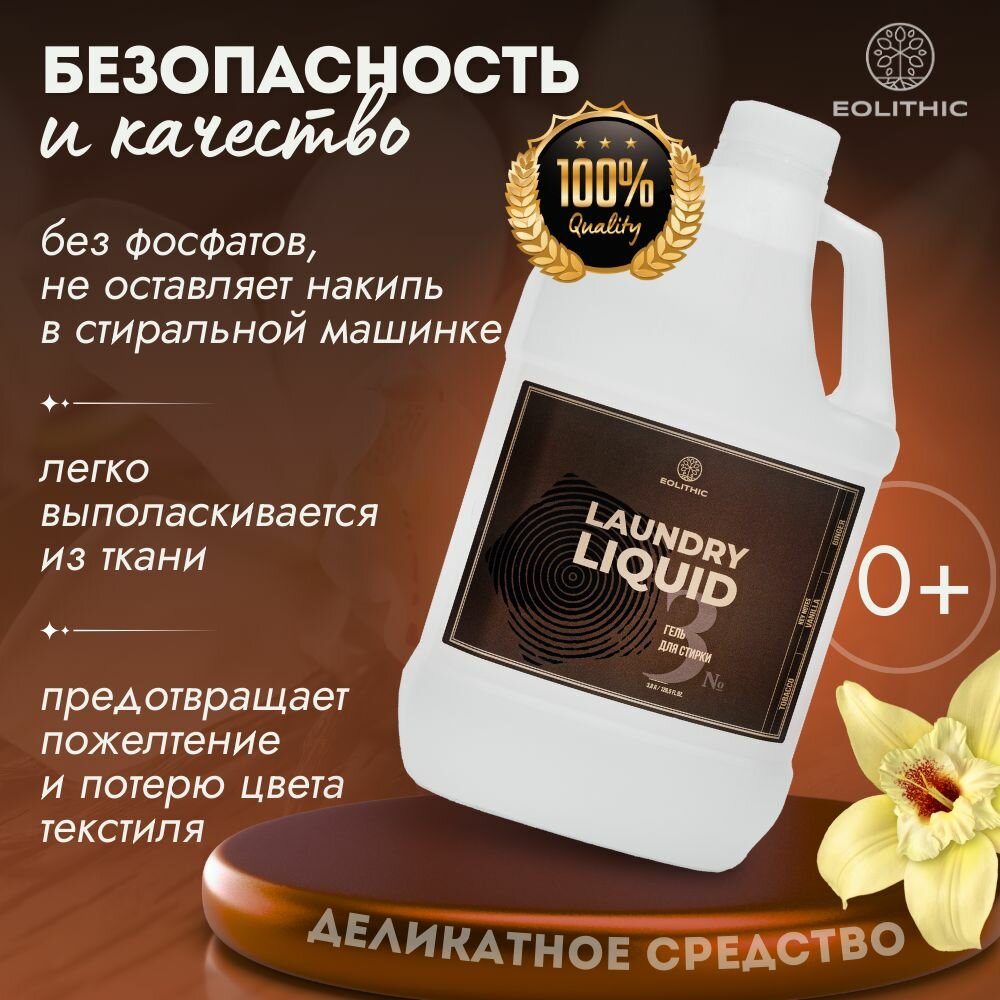 10 цен на Гель для стирки белья универсальный EOLITHIC LAUNDRY LIQUID №3 - Табак / Ваниль / Имбирь 3,8 л