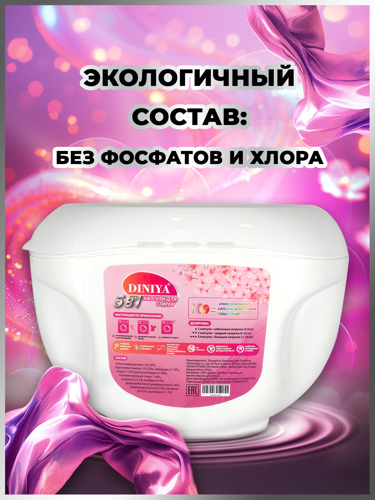 Капсулы для стирки 5 в 1 Сакура информация: