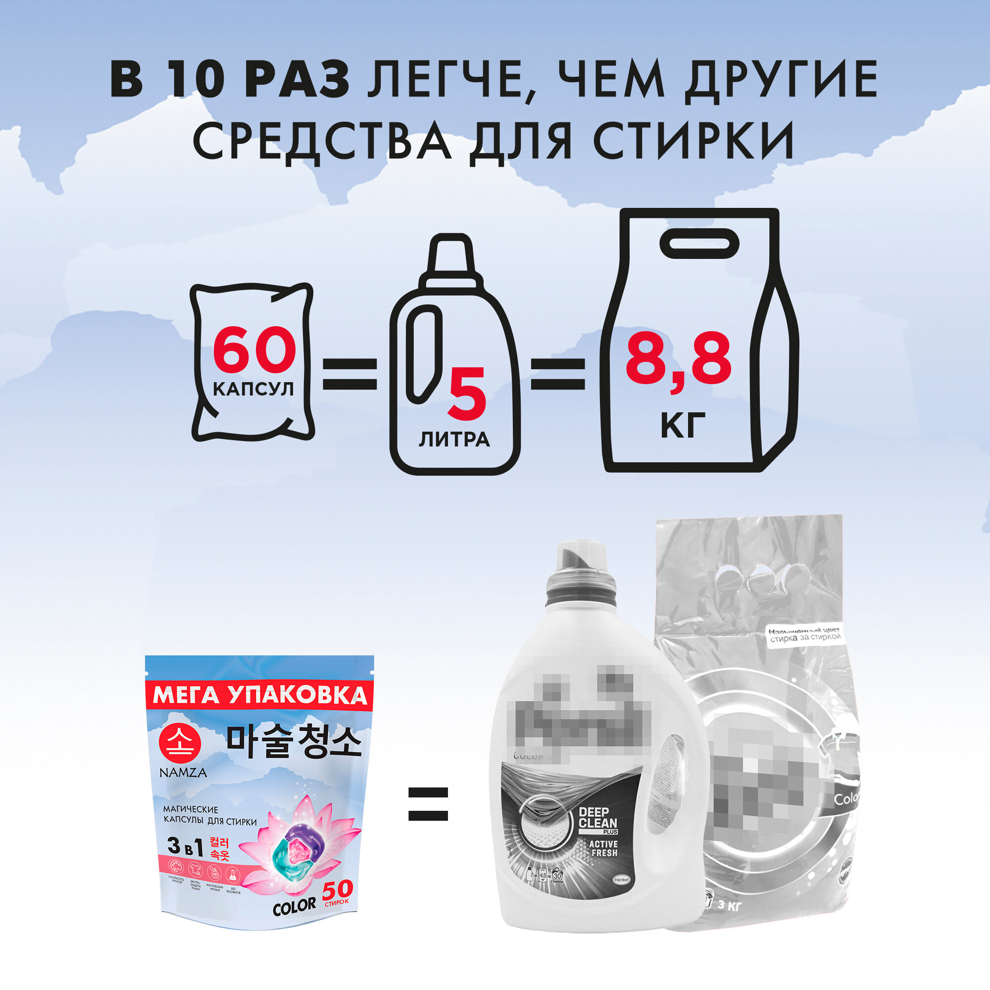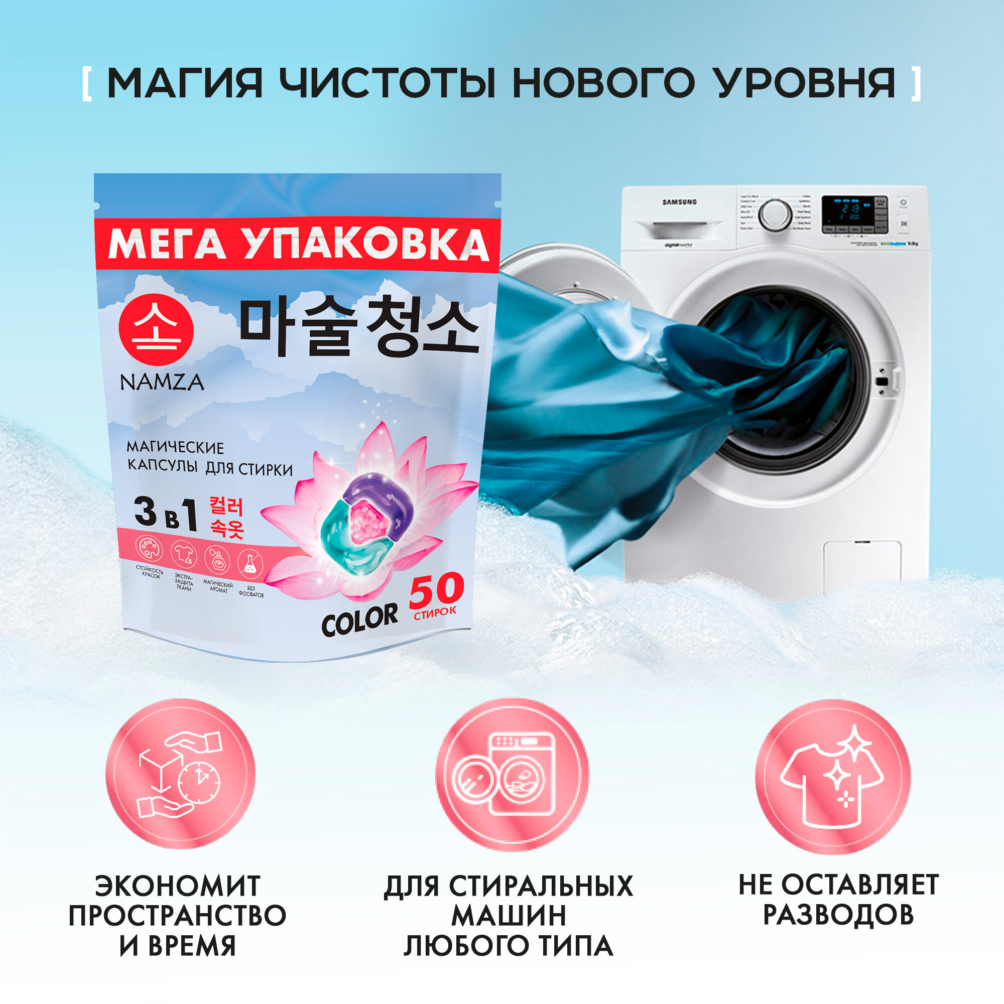 Отзывы на Капсулы для стирки белья с кондиционером 3 в 1 NAMZA, средство для стирки цветного белья 100 шт.