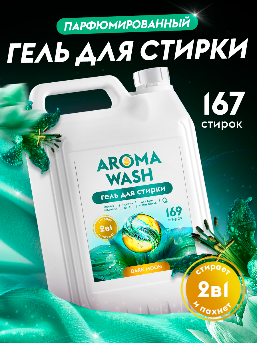 10 цен на Гель для стирки 2в1 с кондиционером Aroma Wash "Dark Moon" 5л 169 стирок, универсальный жидкий порошок, усиленная формула, гипоаллергенный 0+
