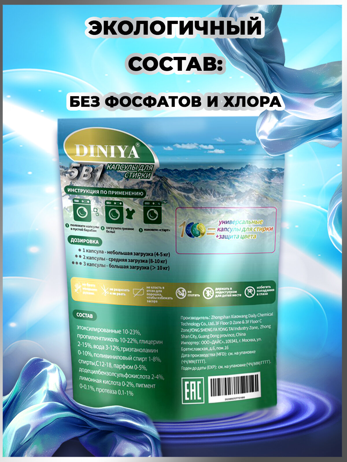 Капсулы для стирки 5 в 1 пакет Горный бриз информация: