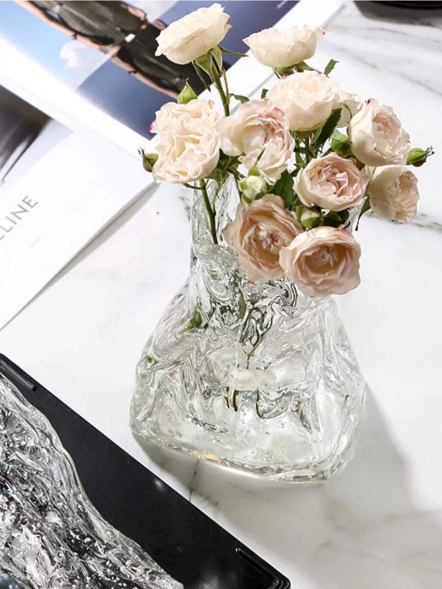 Ваза для цветов сумка ребристая стеклянная