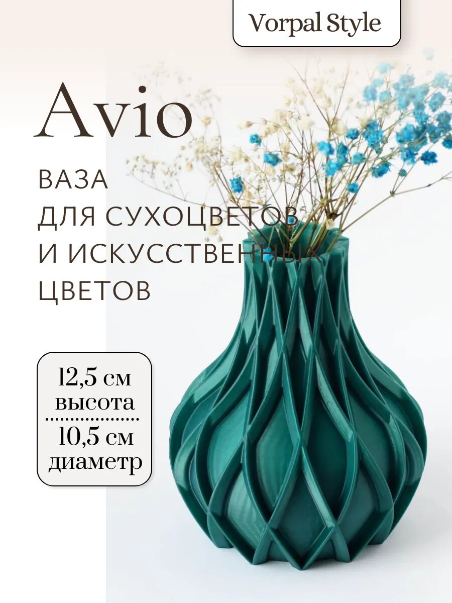 Ваза Avio для сухоцветов и искусственных цветов, изумрудная информация:
