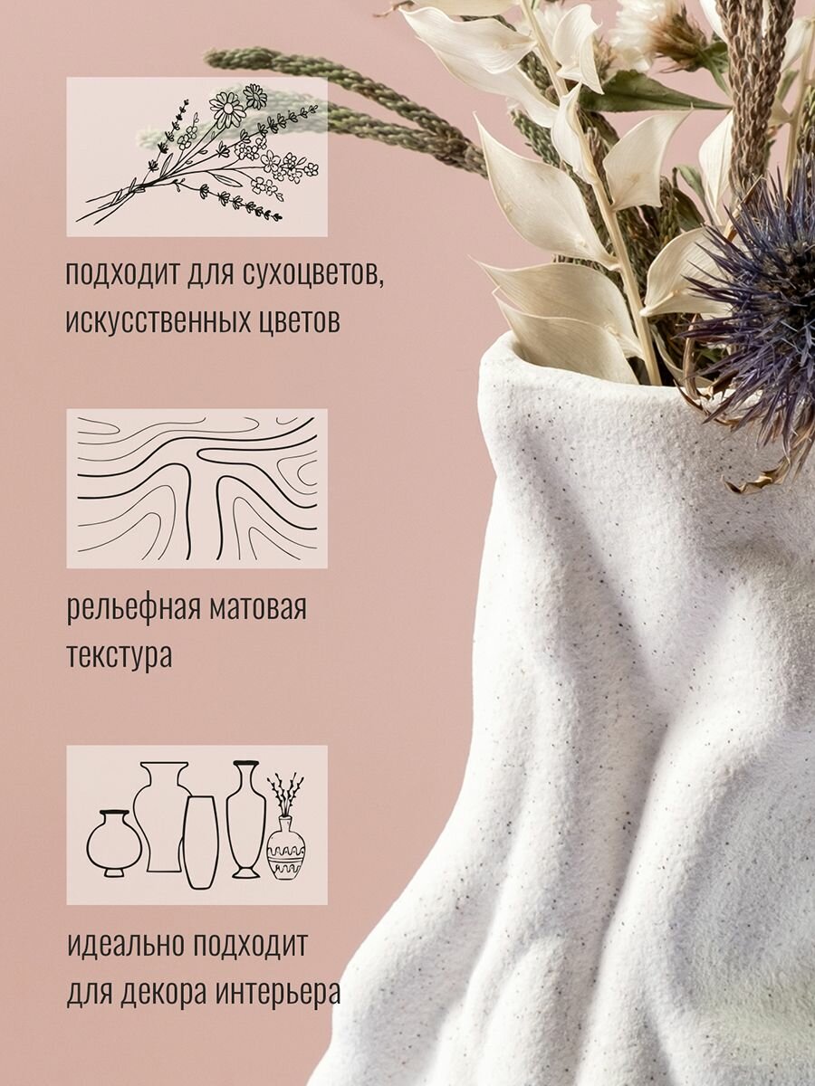 Ваза интерьерная декоративная из фарфора 19см, белая с фактурным матовым покрытием информация: