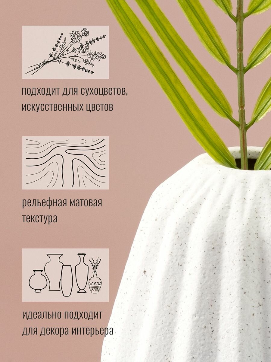 Ваза интерьерная декоративная керамическая 20,5 см белая для цветов и сухоцветов Коралл 1 573 ₽