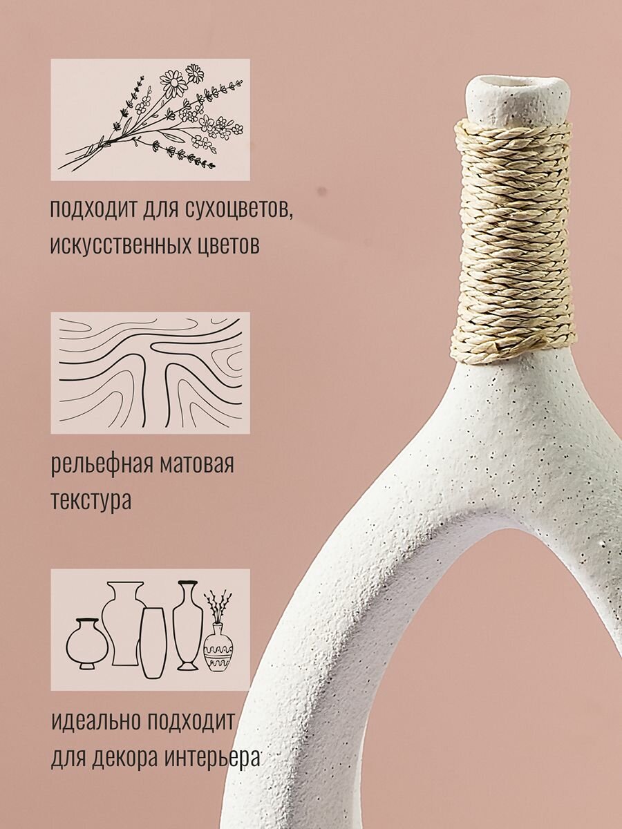 Ваза интерьерная декоративная для сухоцветов 25,5см цвет бежевый, керамика 3 100 ₽