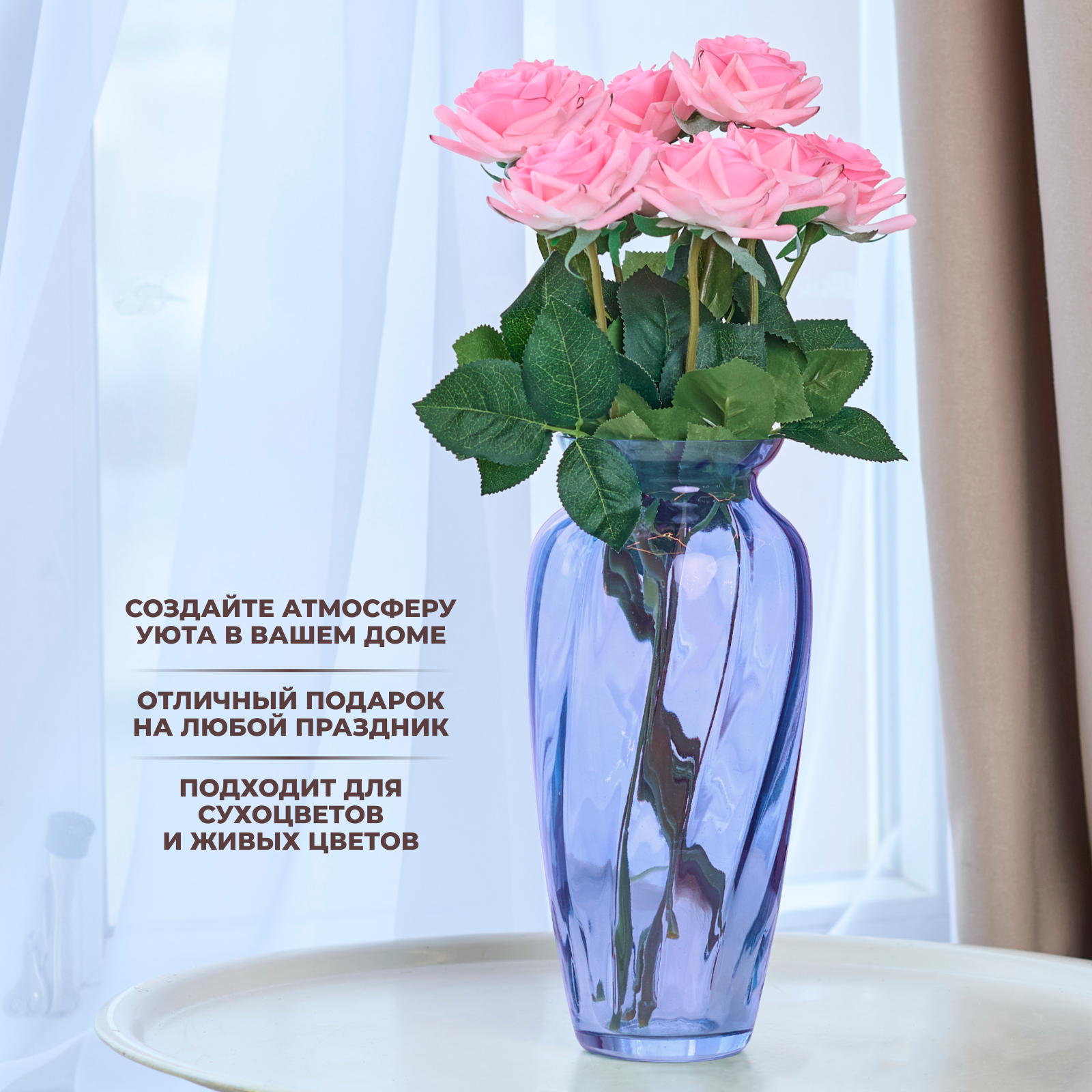 Ваза для цветов и сухоцветов высокая, декоративная интерьерная стеклянная 5 л, лиловая 3 230 ₽
