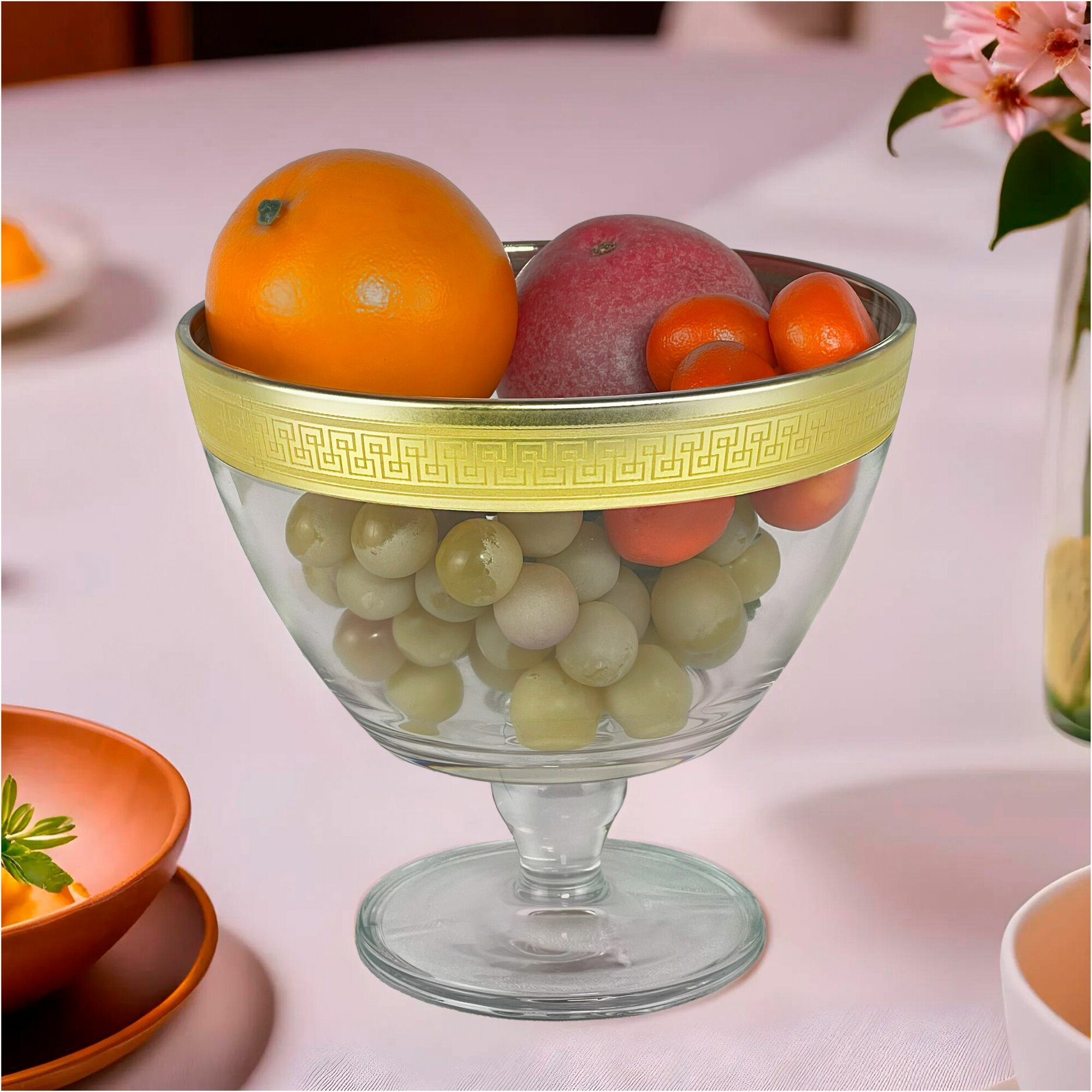 Ваза стеклянная на ножке для фруктов в подарочной упаковке с алмазной гравировкой PROMSIZ барокко, 500 мл, 1 шт. 914 ₽