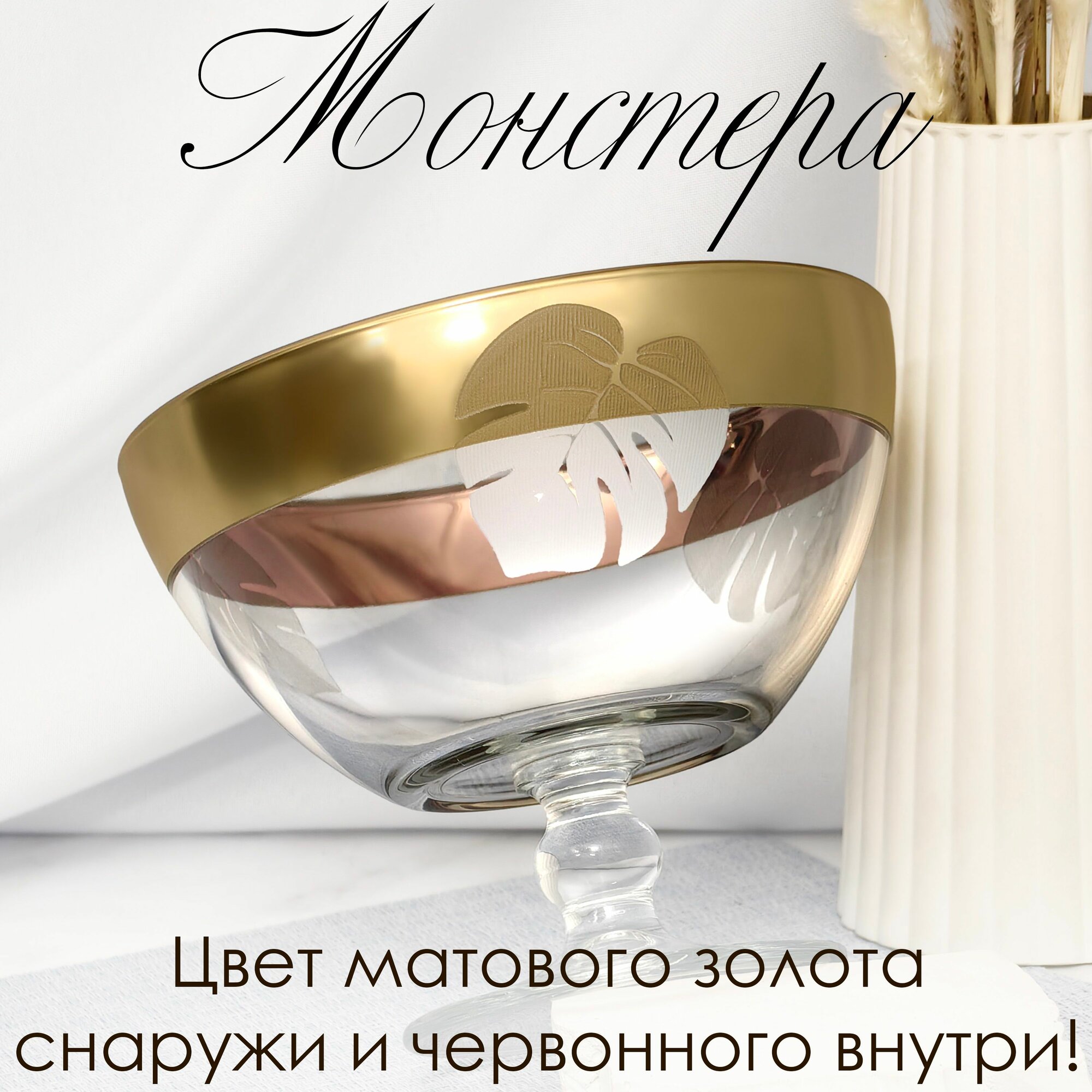 Отзывы на Ваза стеклянная на ножке для фруктов / конфет с алмазной гравировкой PROMSIZ монстера, D 160 мм, 1 шт.