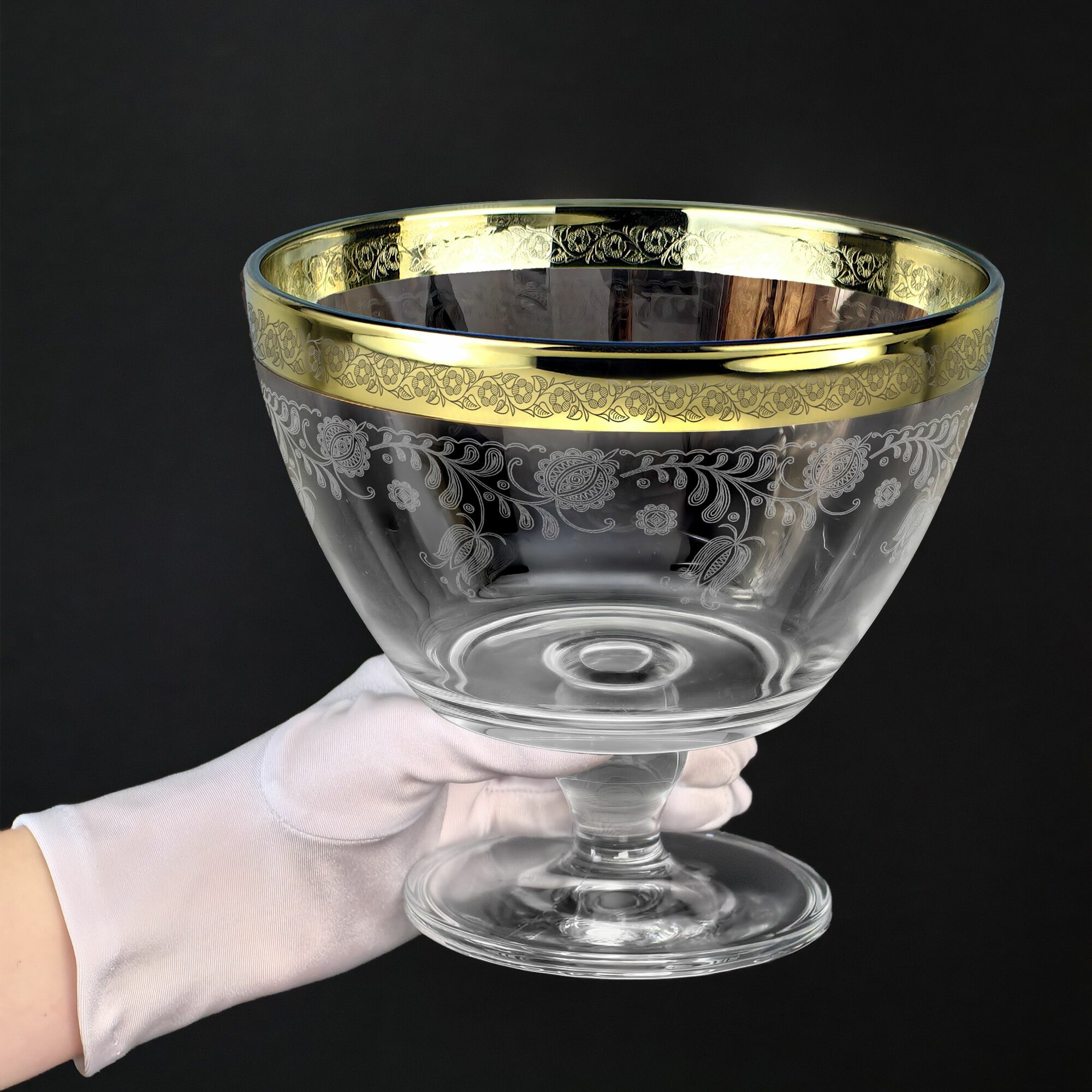 Ваза стеклянная на ножке для фруктов / конфет с алмазной гравировкой PROMSIZ нежность, d 190 мм, 1 шт. информация: