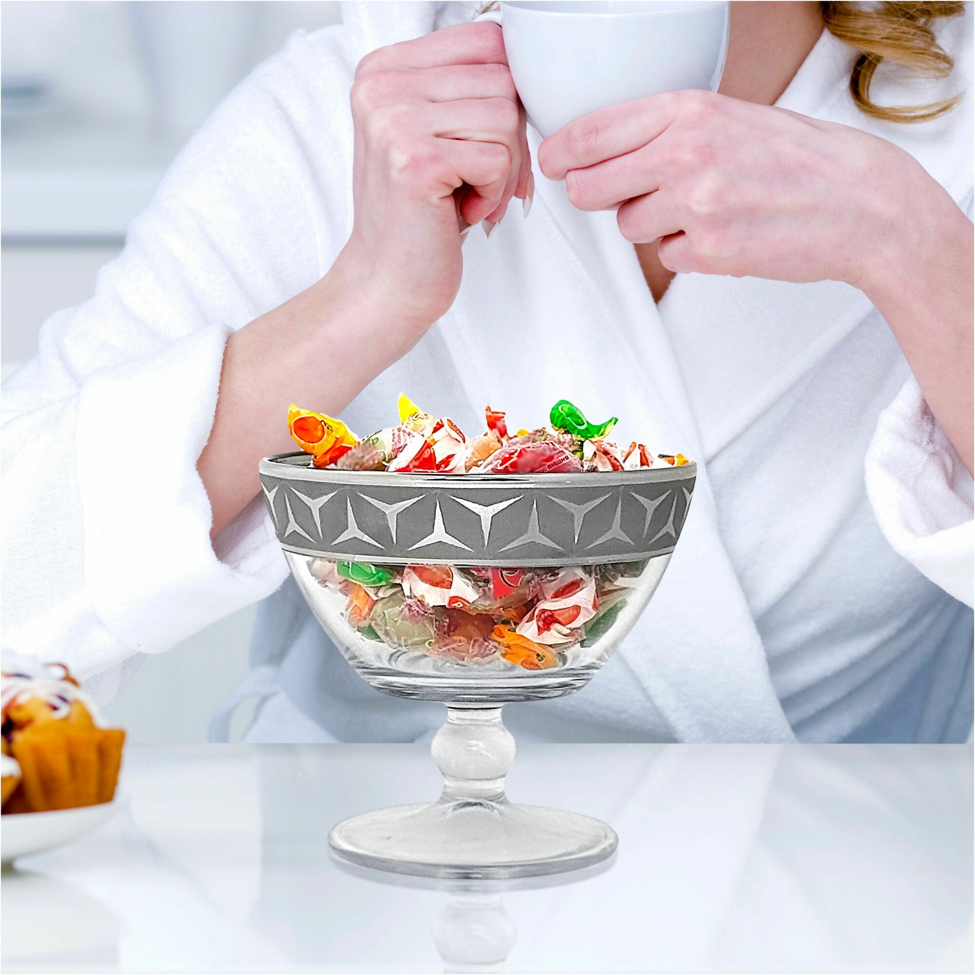 Ваза стеклянная на ножке для фруктов / конфет с алмазной гравировкой PROMSIZ драйв d130 мм, 1 шт. информация: