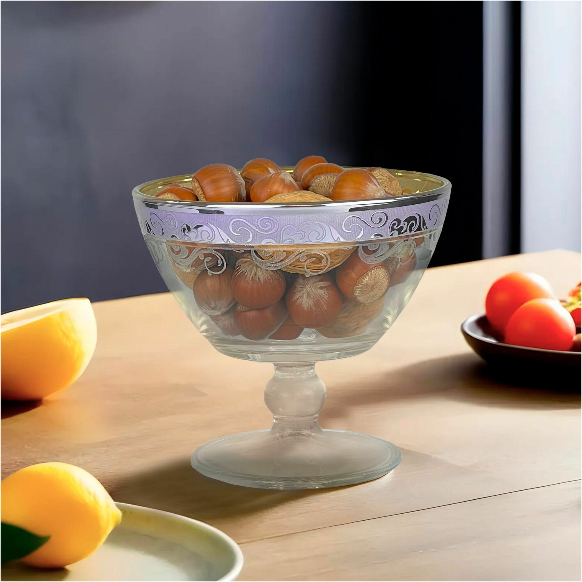 Ваза стеклянная на ножке для фруктов в подарочной упаковке с алмазной гравировкой PROMSIZ барокко, 500 мл, 1 шт. 914 ₽