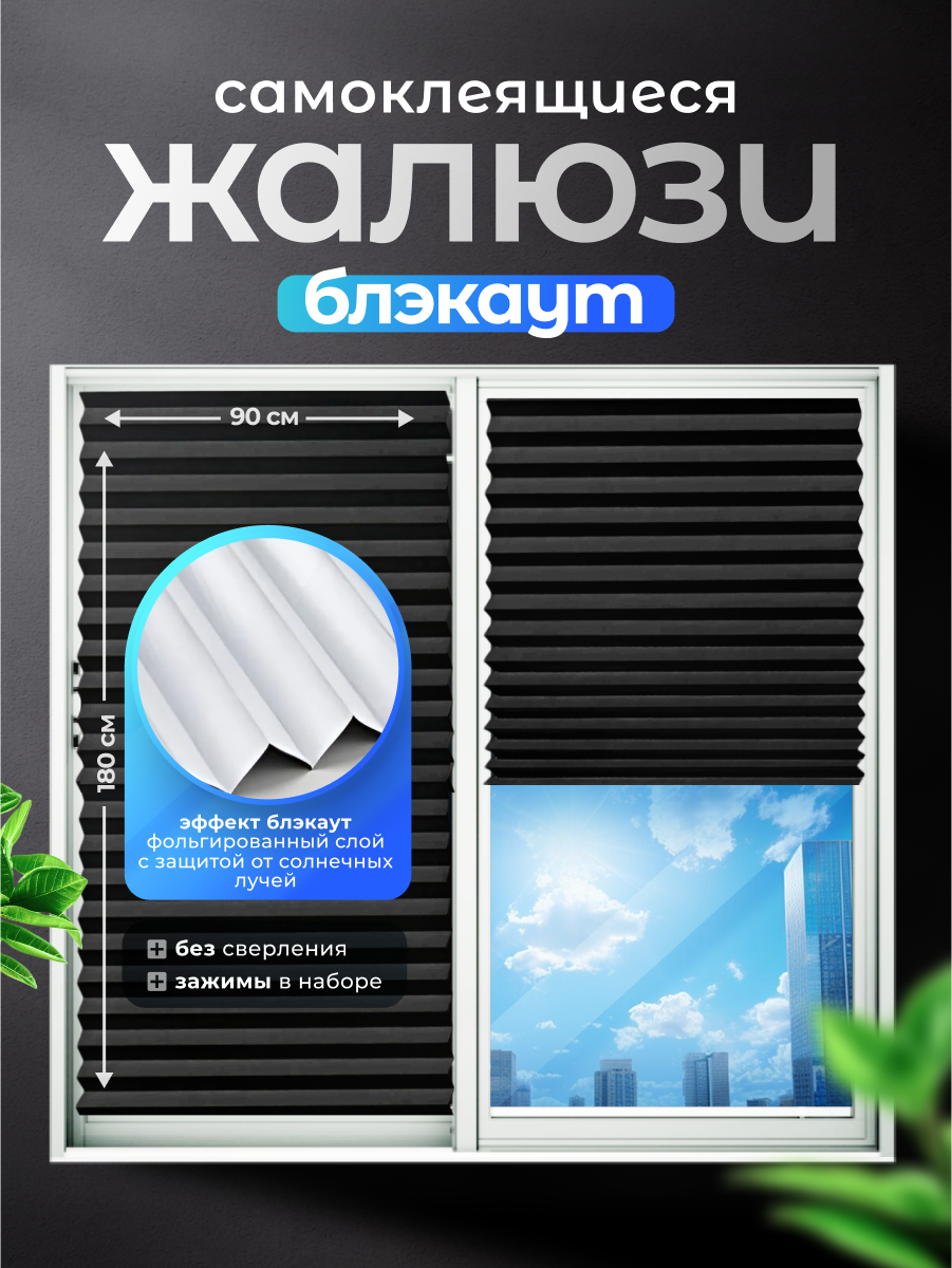 Отзывы на Жалюзи плиссе MALPACA самоклеящиеся на фольгированной основе, блэкаут 90х180см черные