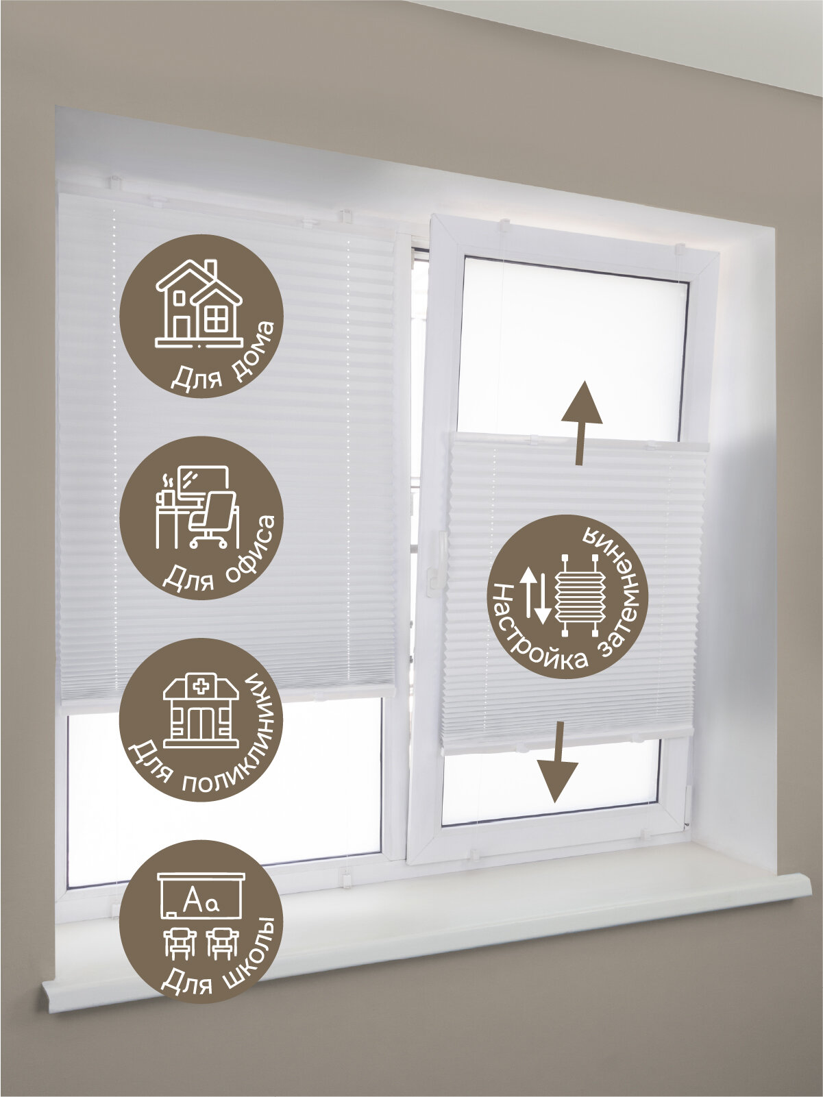Жалюзи плиссе, самоклеящиеся, 60x180 см, монтаж без сверления