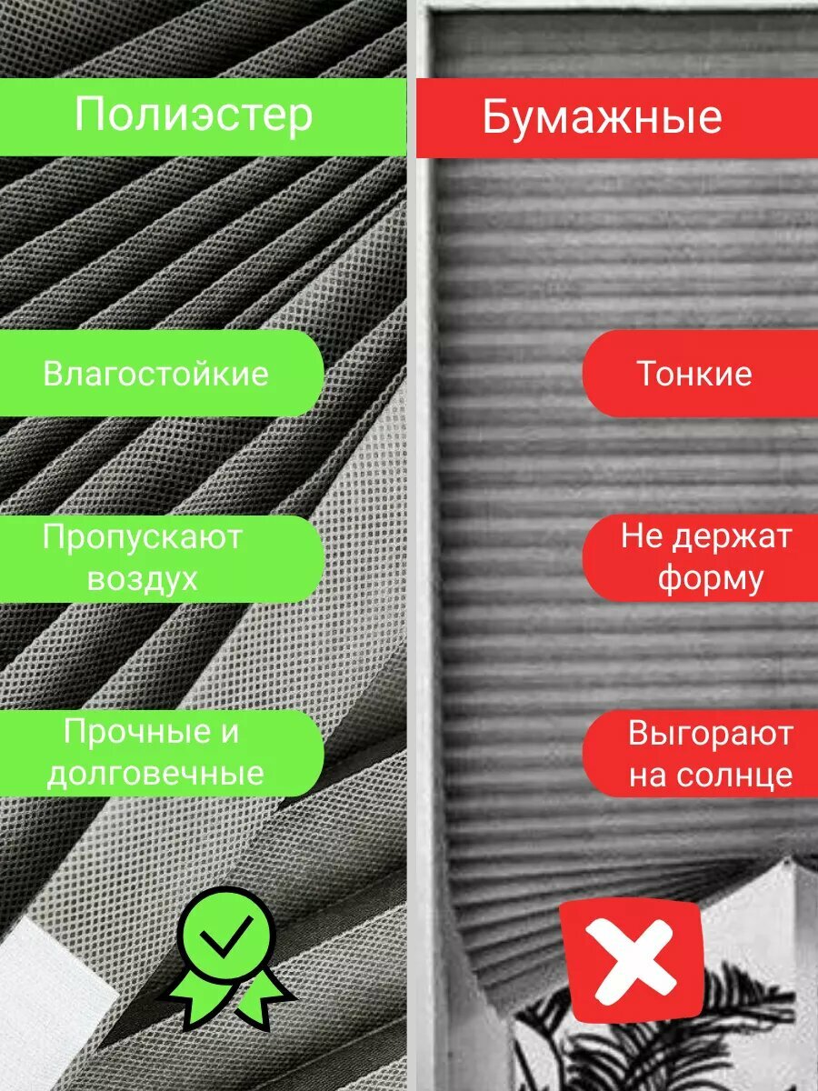 Жалюзи Плиссе Самоклеящиеся Без Сверления DecorLX 45х180 4 шт, серые 1 100 ₽