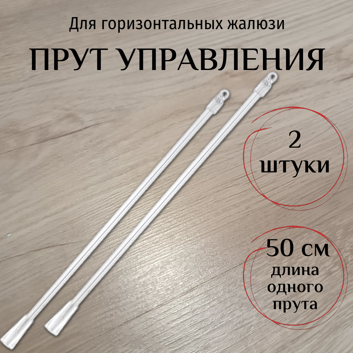 Прут управления для горизонтальных жалюзи, 2 штуки, 50 см, прозрачный, полипропилен, Одёжка для Окошка. информация: