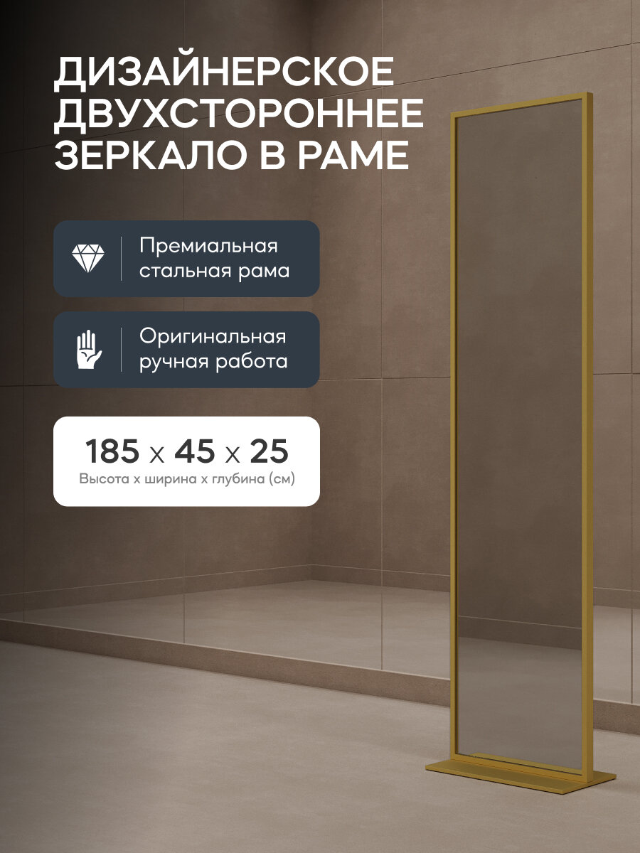 GENGLASS Зеркало напольное двухстороннее в золотой металлической раме 185x45 см ZELISO-2 Gold информация: