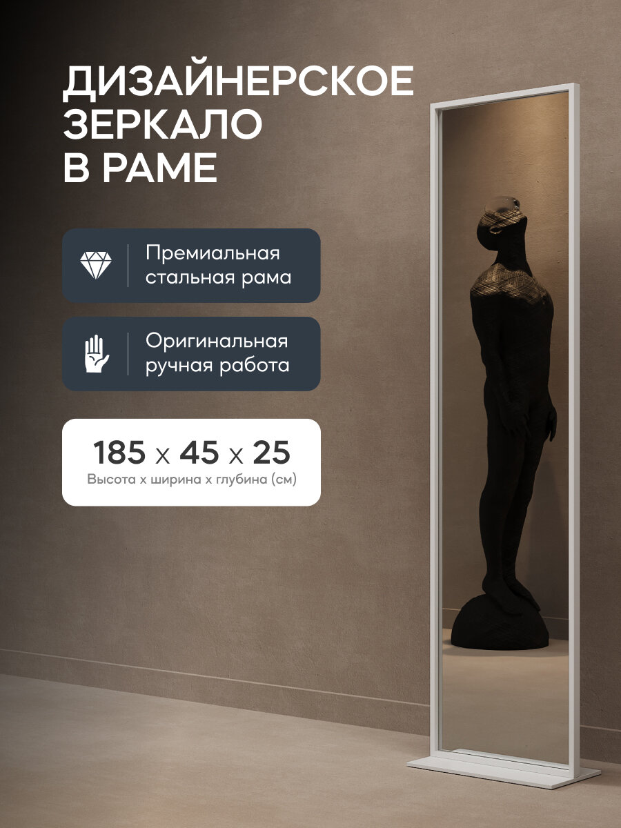 GENGLASS Зеркало напольное в белой металлической раме 185x45 см ZELISO White информация: