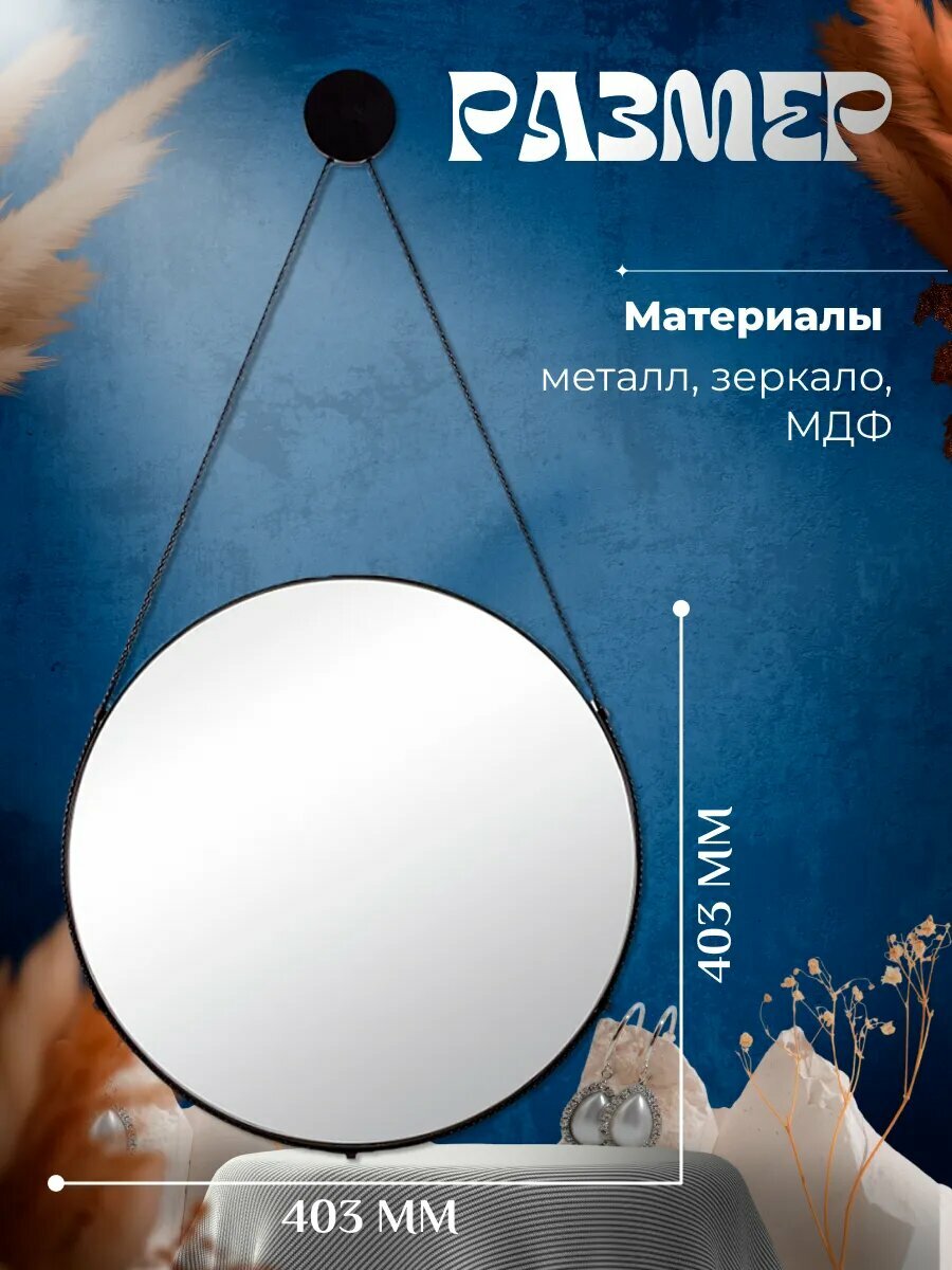 Зеркало настенное Рубин 40 см в ванную черный цвет круглое "на ремне" информация: