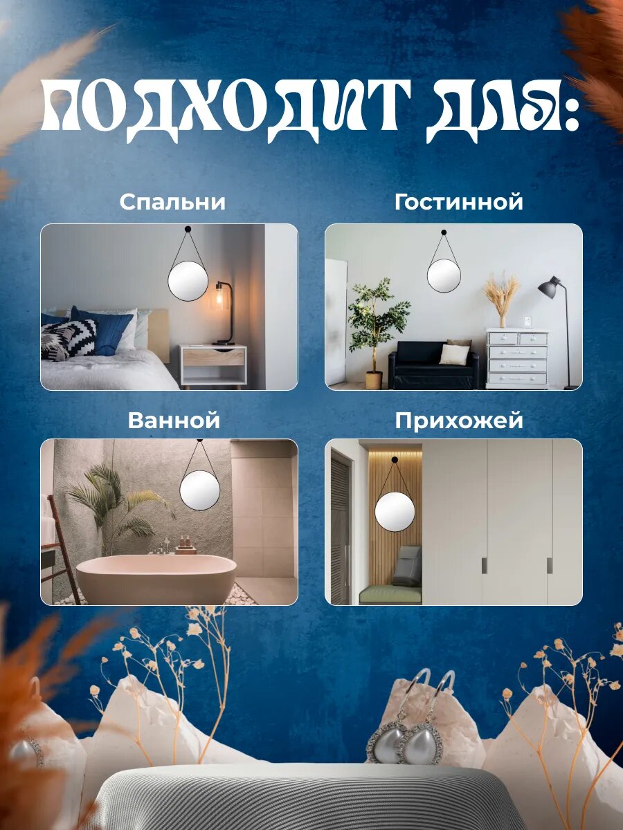 Отзывы на Зеркало настенное Рубин 40 см в ванную черный цвет круглое "на ремне"