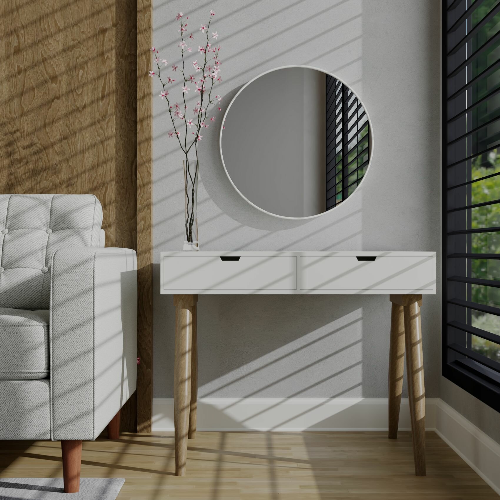 Зеркало Postermarket "Рей", круглое, настенное, в раме, цвет : белый, 70х70 см