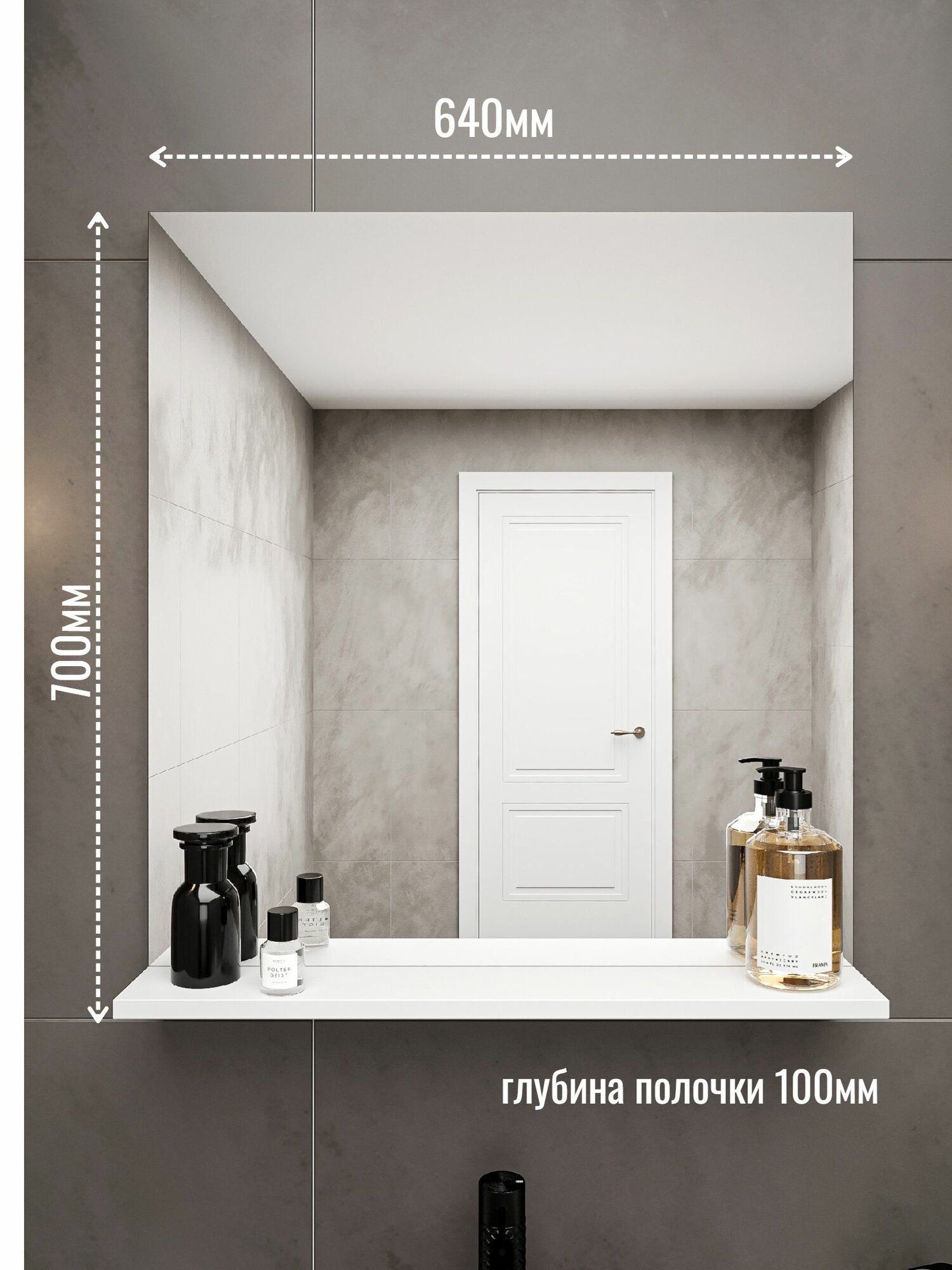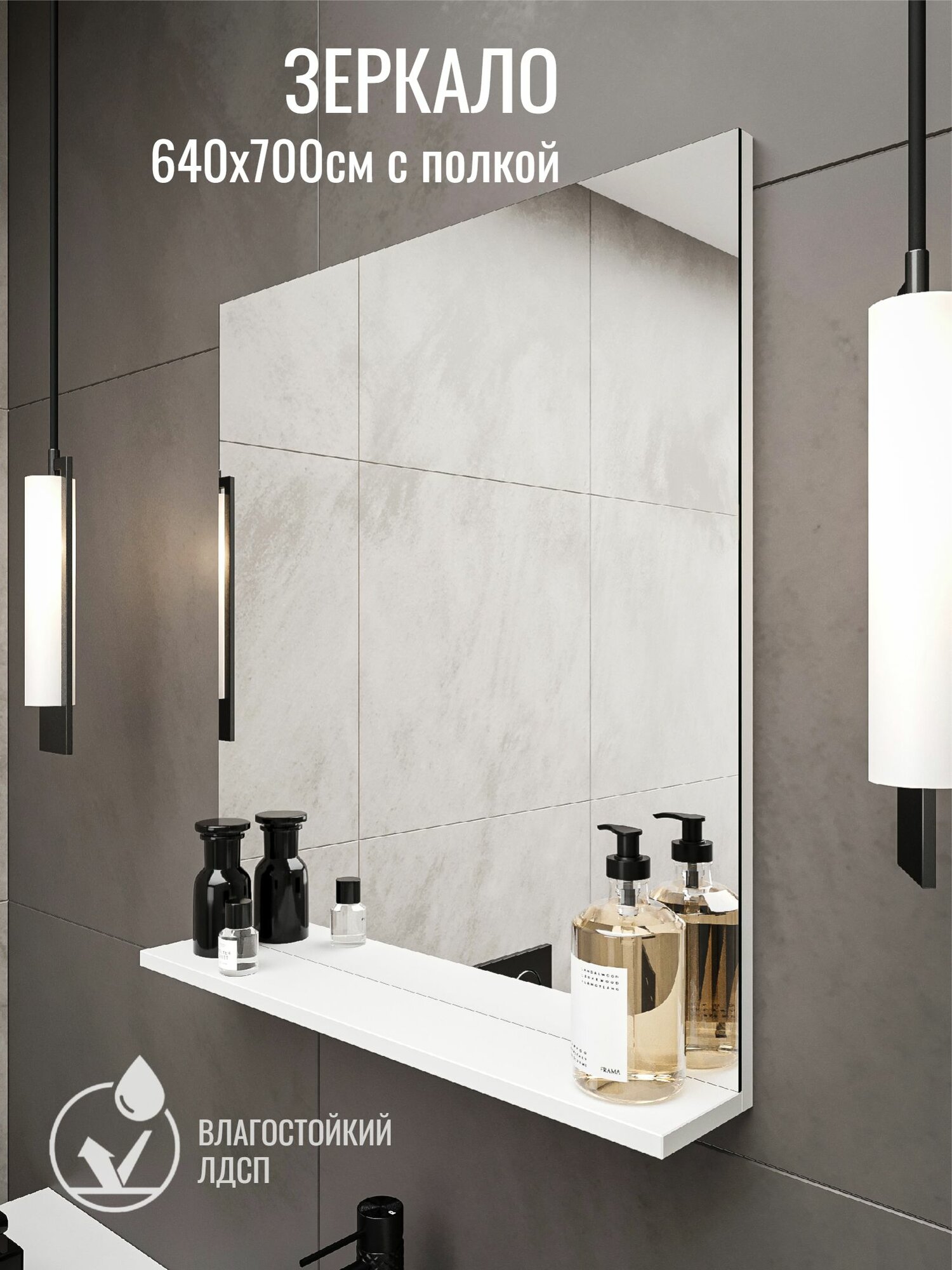 Зеркало с полочкой, влагостойкое ЛДСП, для ванной, 64x70 см, белое информация: