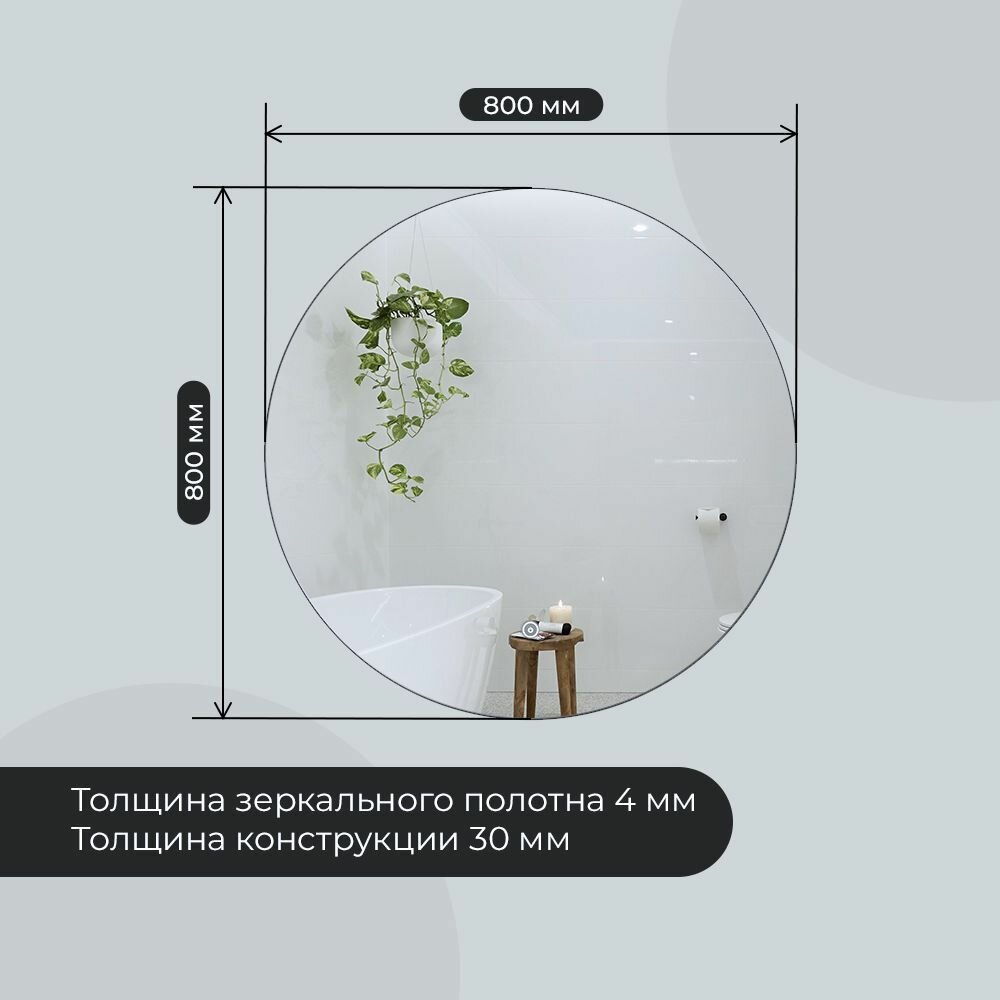 Зеркало с холодной подсветкой в ванную комнату настенное сенсорное круглое "AMOURE" D80 информация: