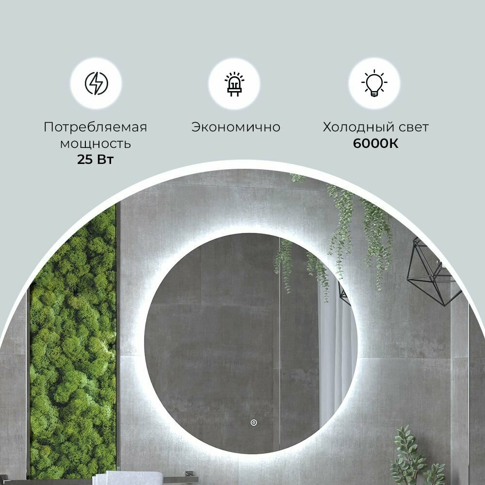 10 цен на Зеркало с холодной подсветкой в ванную комнату настенное сенсорное круглое "AMOURE" D80