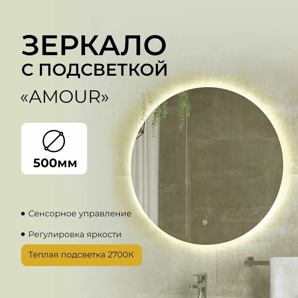 10 цен на Зеркало с теплой подсветкой в ванную комнату настенное сенсорное круглое "AMOURE" D50