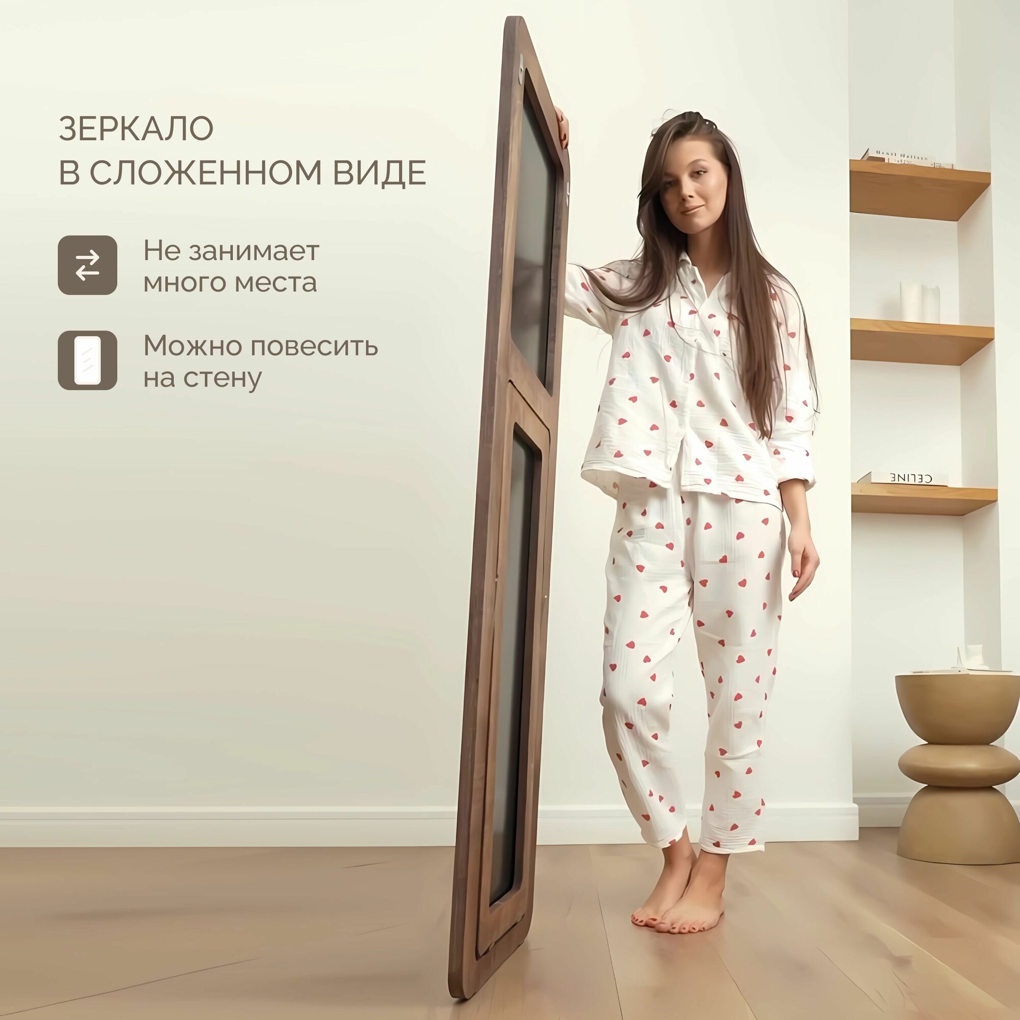 Зеркало напольное в полный рост ZASMOTRELIS, раздвижное, в деревянной раме, в прихожую, в гардероб, в комнату. информация: