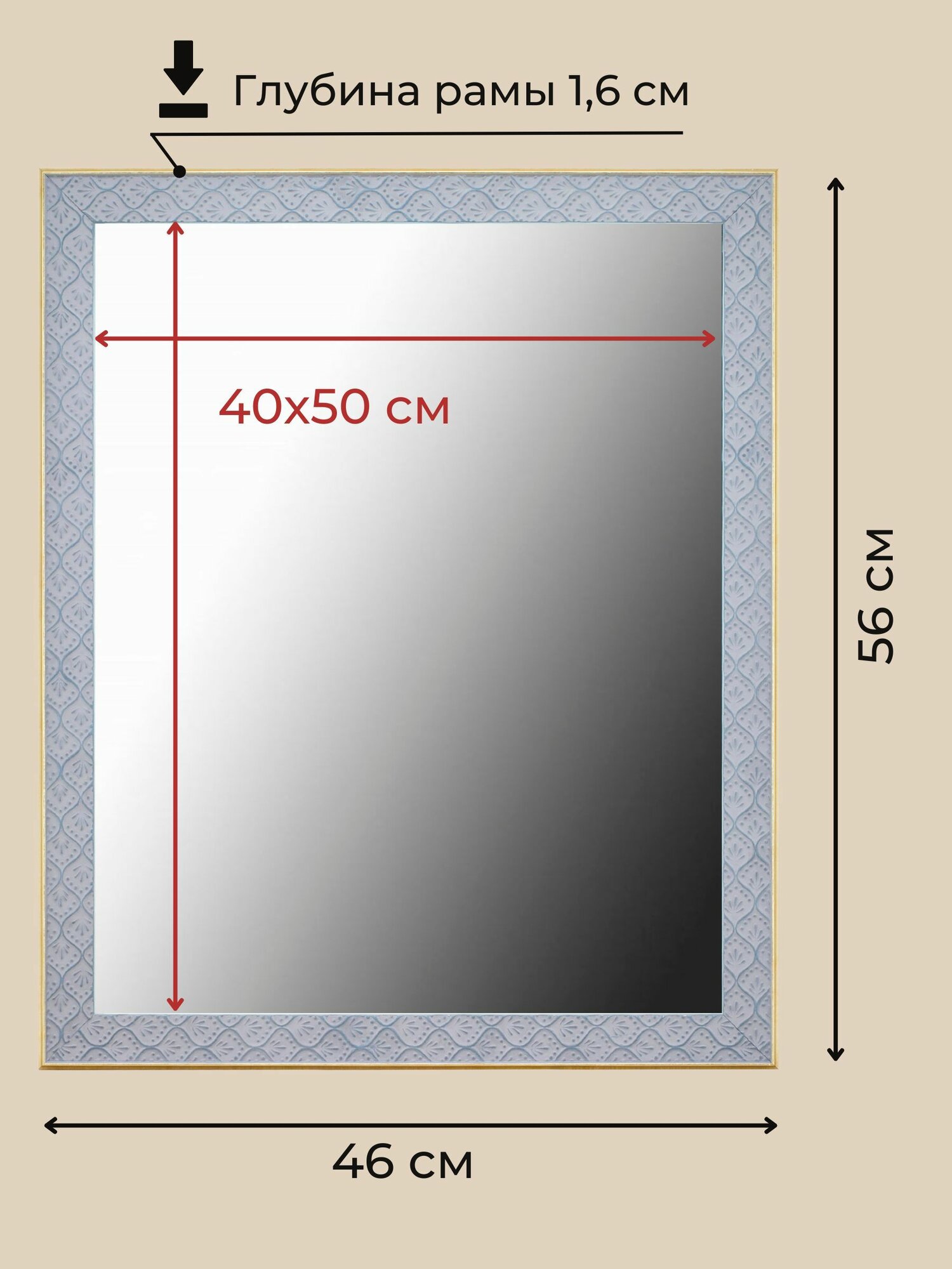Зеркало настенное Мастер Рио прямоугольное интерьерное в раме 46х56 см, синий информация: