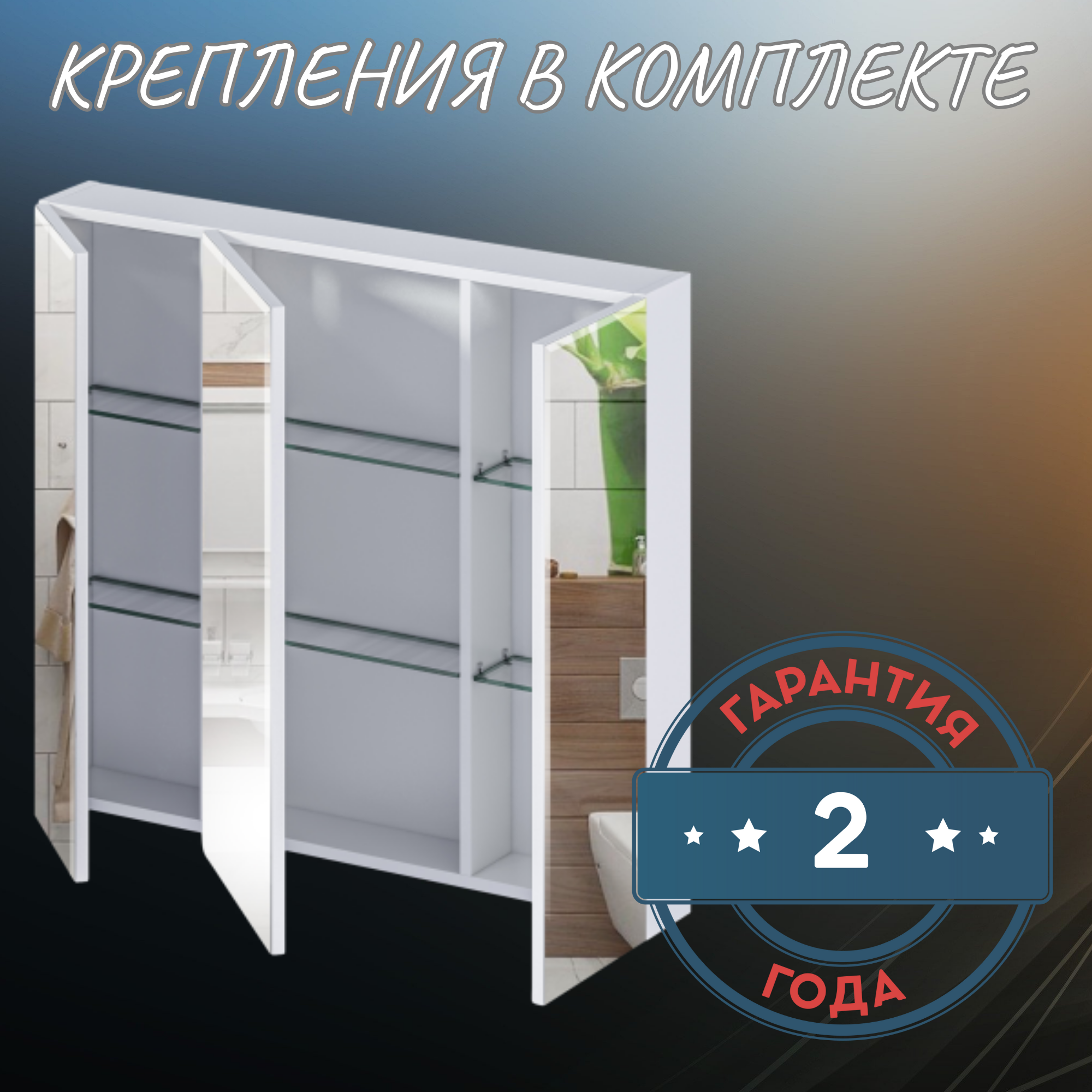 Отзывы на Подвесной шкаф-зеркало в ванную 90х80 см, 3 дверцы, цвет белый 1Marka Соната У29558МП