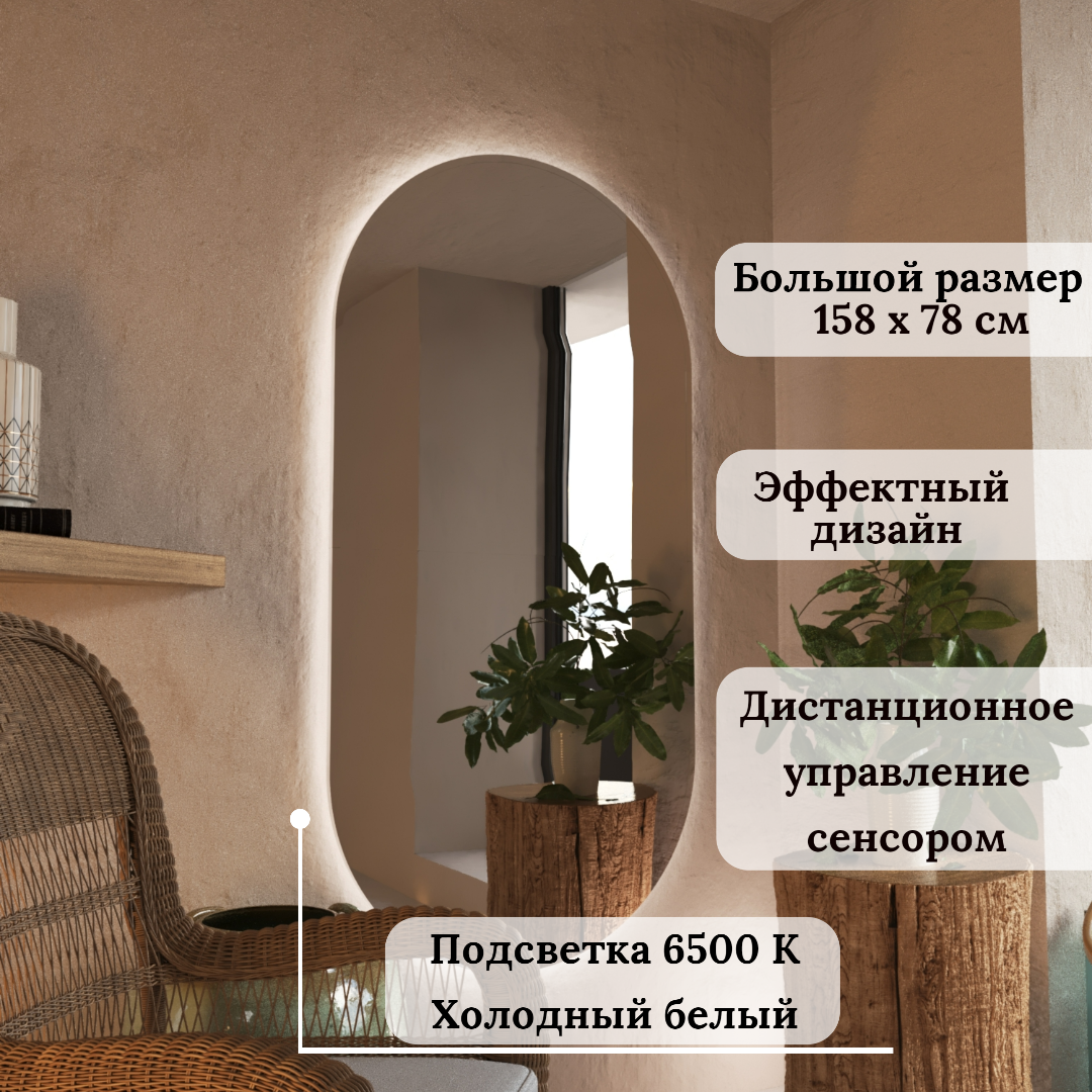 Настенное зеркало в полный рост овальное с подсветкой 6500К серии VERSALE безрамное настенное 158 см Х 78 см интерьерное информация: