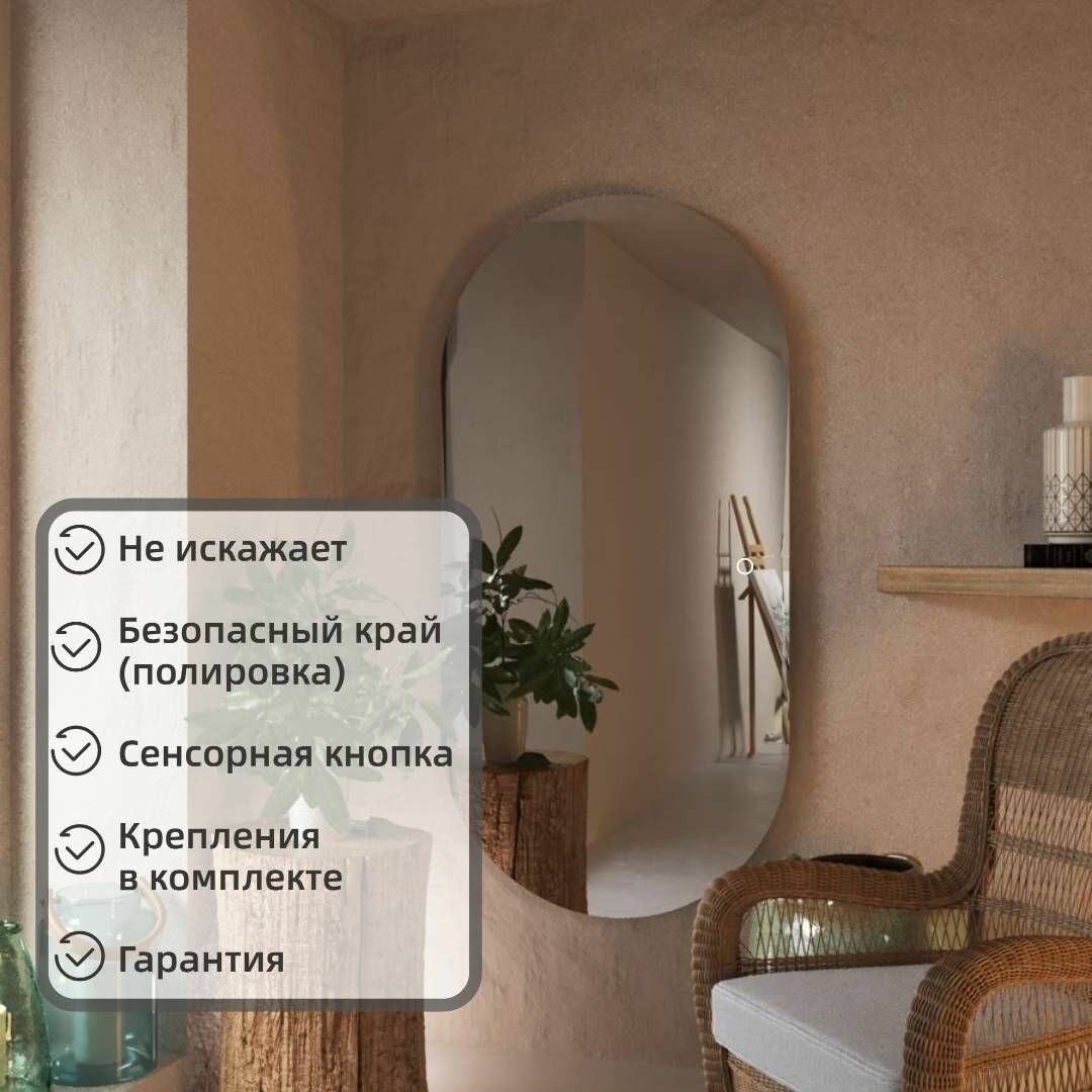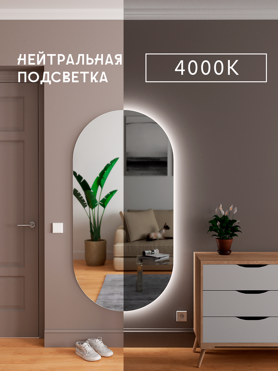 10 цен на Большое настенное зеркало с подсветкой овальное в прихожую 160×80 см в полный рост гостиную интерьерное без рамы
