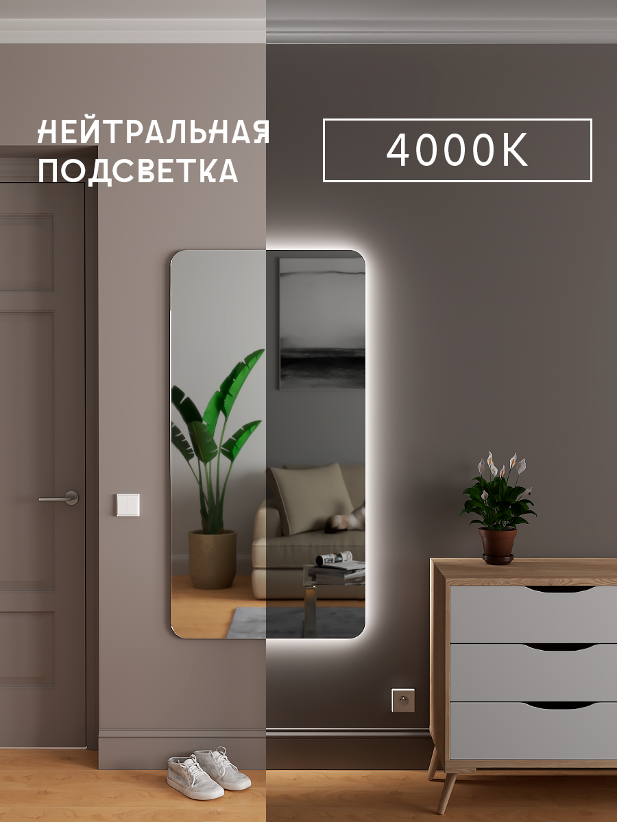 Отзывы на Зеркало без рамы 140х70 см с фоновой подсветкой 4000К (дневной белый свет) серии Valletta на стену в полный рост
