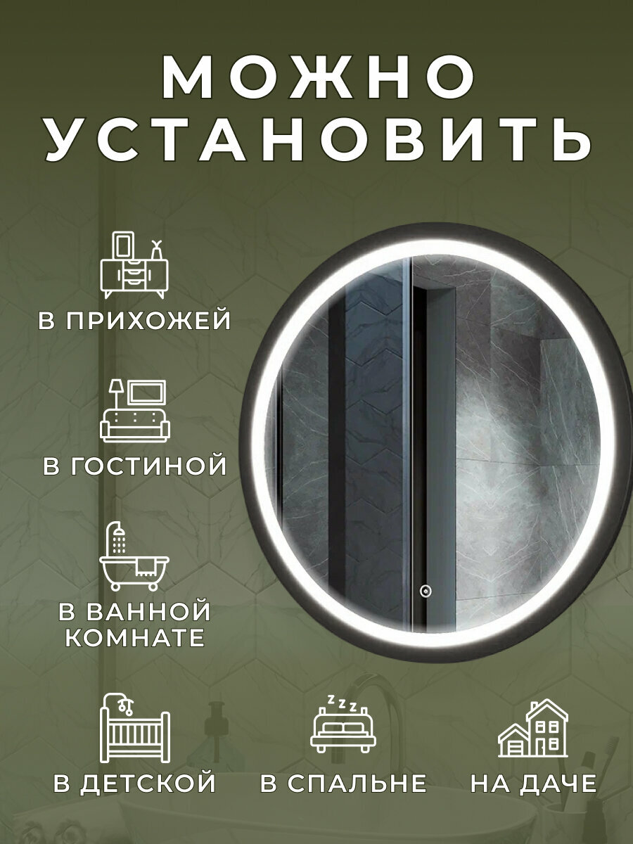 Отзывы на Зеркало Bau Loft D60, круглое, LED подсветка, сенсорный выключатель