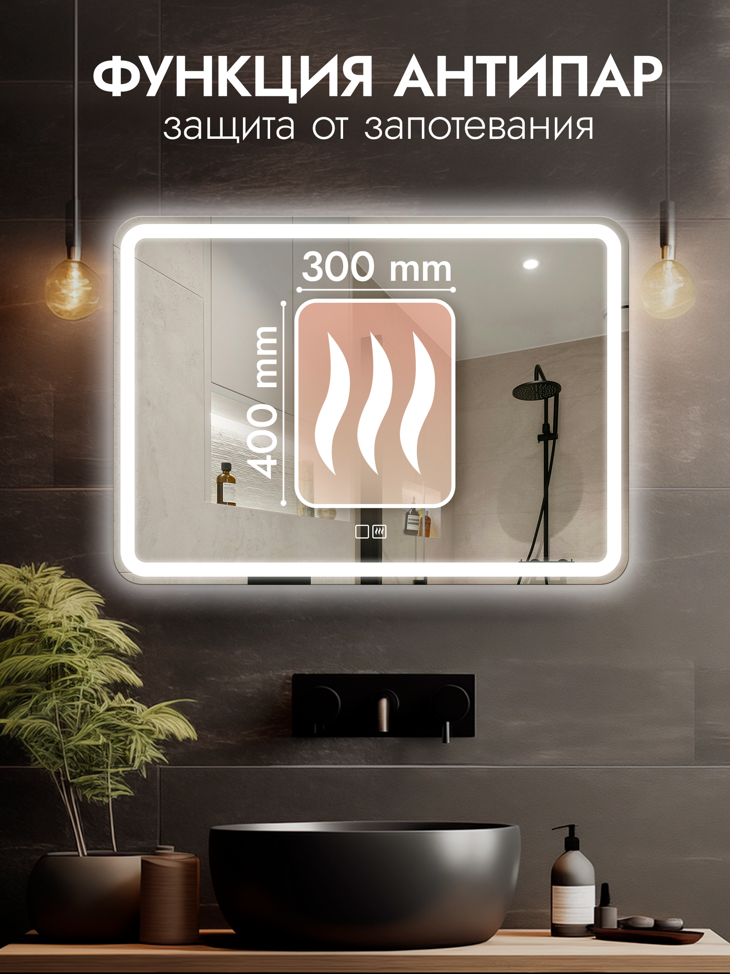 Отзывы на Настенное зеркало с подсветкой и подогревом в ванную Laino 100х80 см (ореольная подсветка, холодный свет 6000К, сенсорное управление, прямоугольное зеркало для ванной, функция Антипар)
