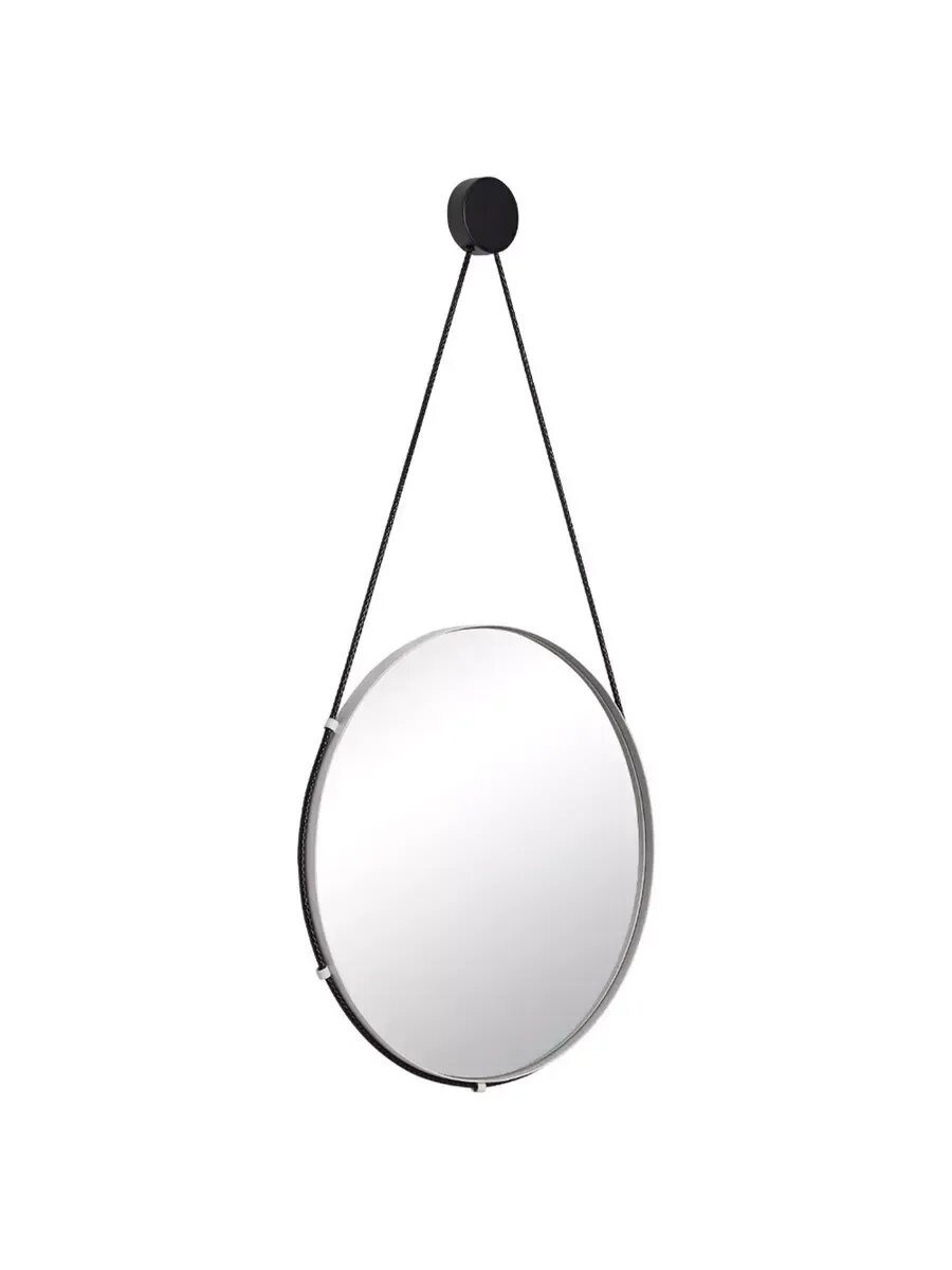 Зеркало настенное в ванную Рубин большое 60 см, цвет белый/черный на ремне информация: