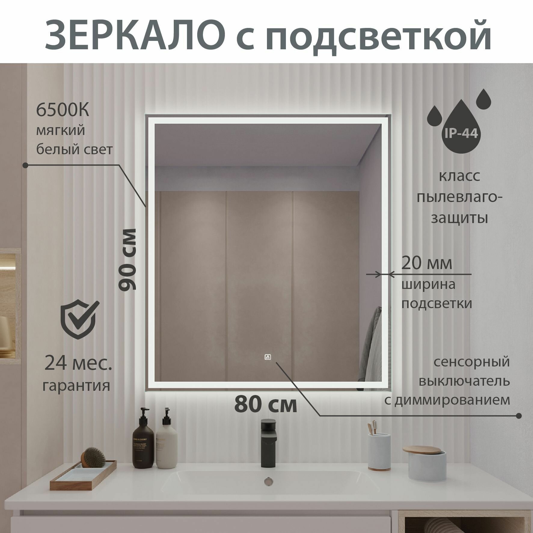 Зеркало настенное CARRERA 80х90 с подсветкой , сенсорный выключатель / AQUA DE MARCO информация: