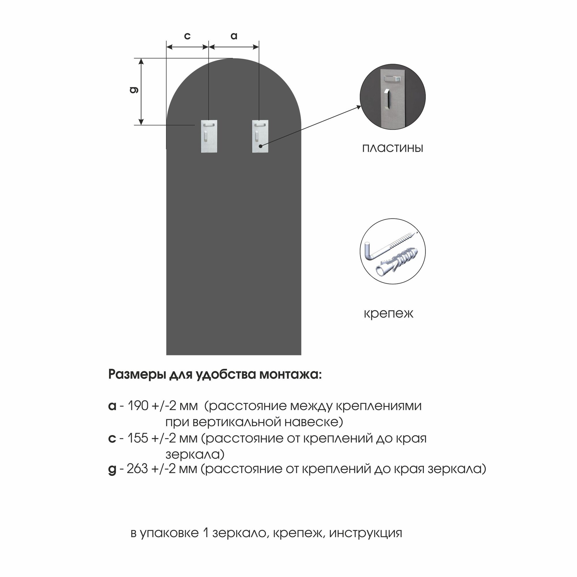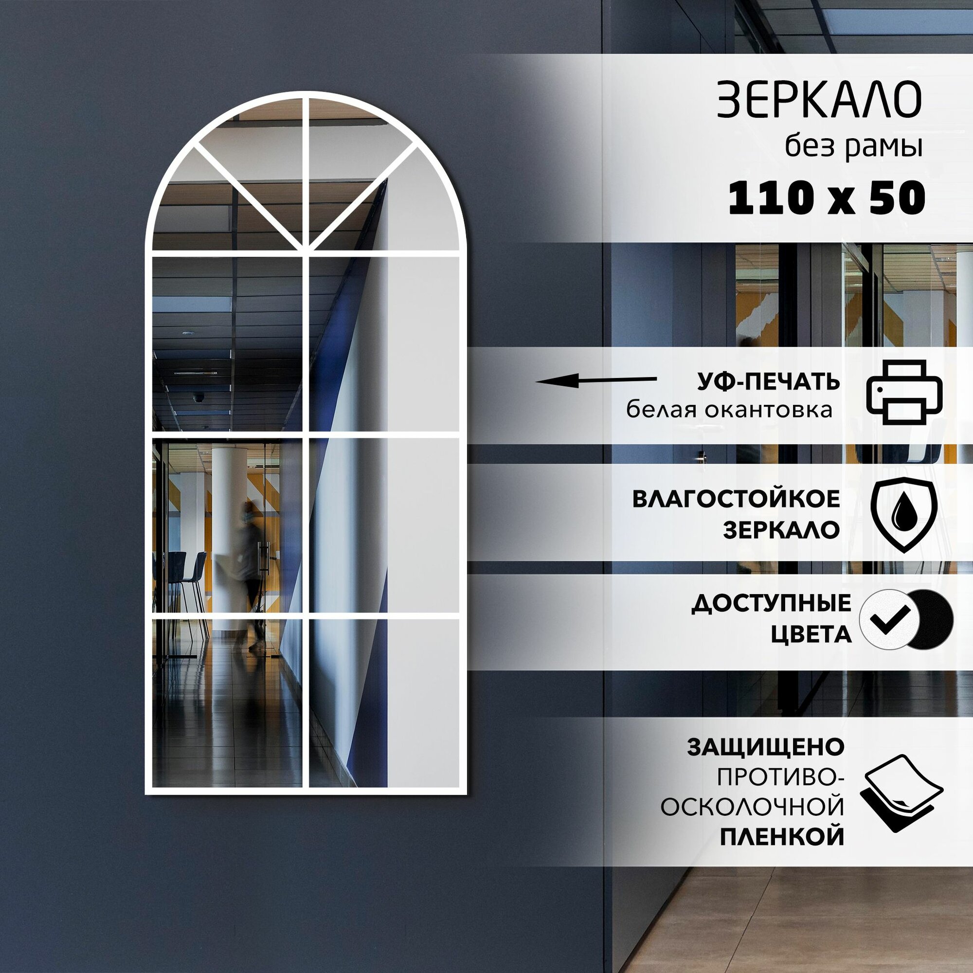 Зеркало настенное арка с белой окантовкой 110x50 см Алмаз-Люкс информация: