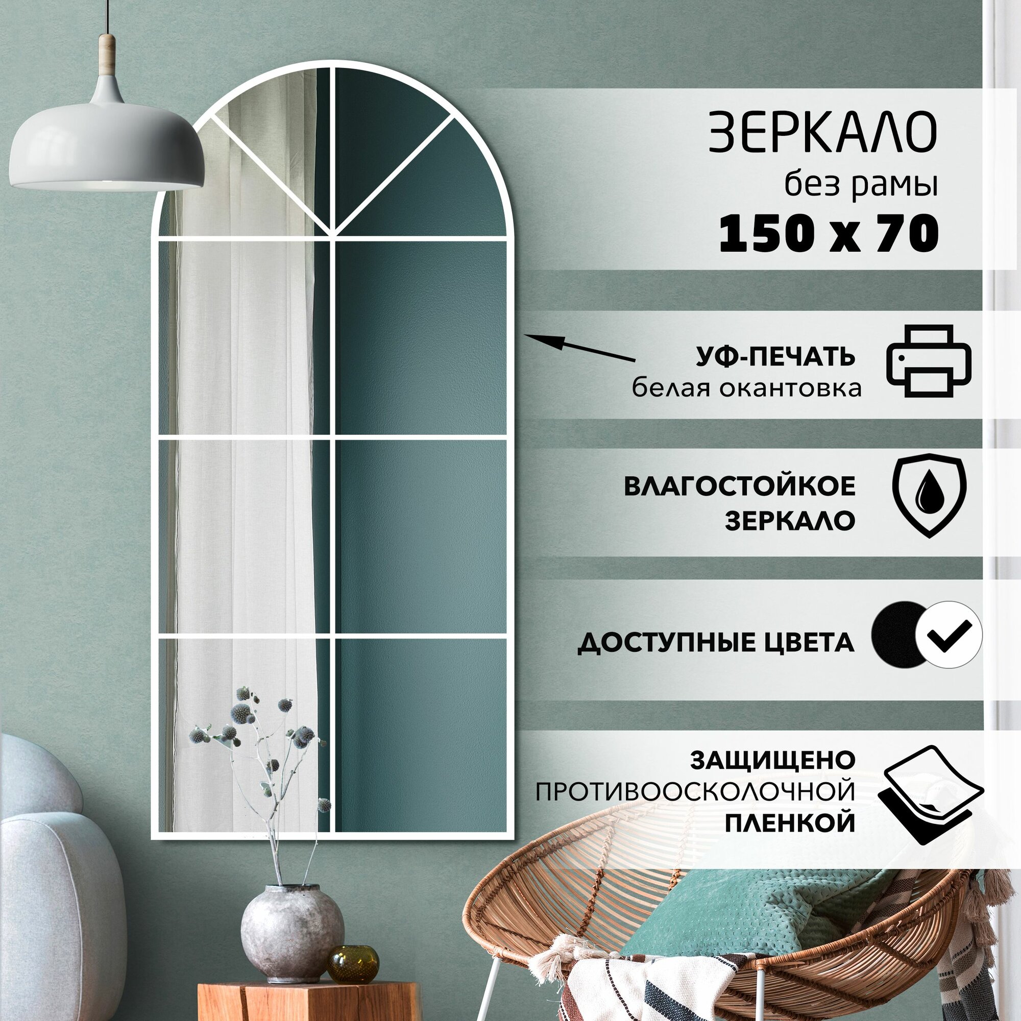Зеркало настенное большое арка с белой окантовкой в полный рост 150x70 см Алмаз-Люкс информация: