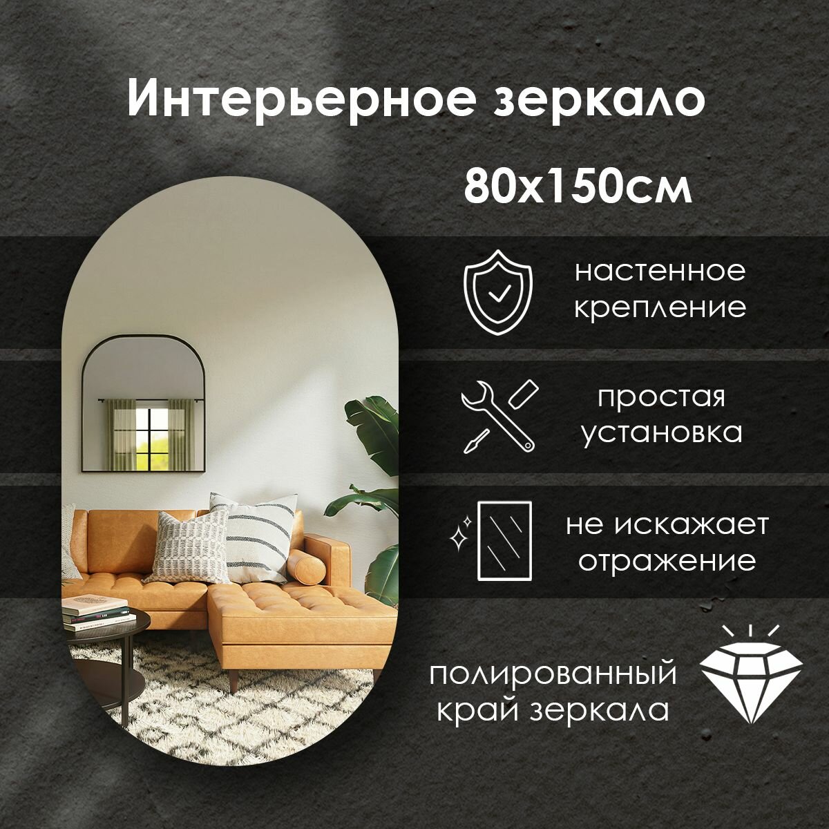 Зеркало интерьерное капсульное 150х80 см информация: