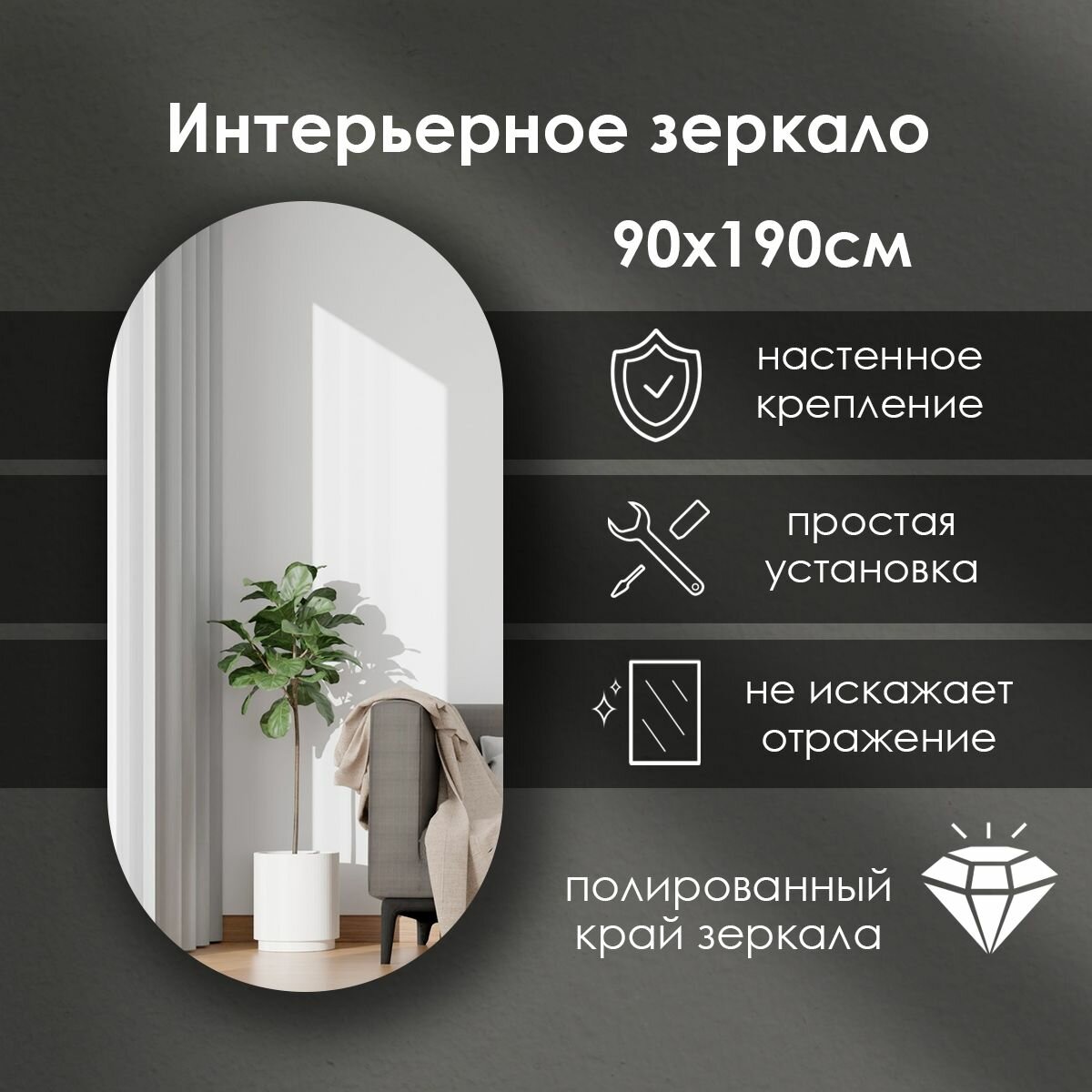 Зеркало интерьерное капсульное 190х60 см 8 269 ₽