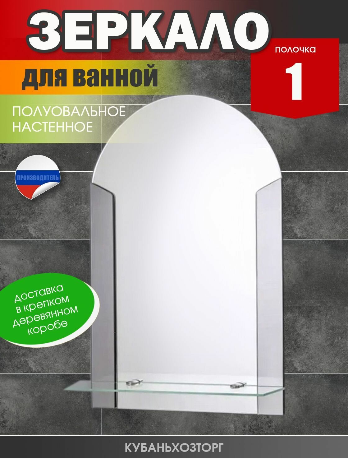 Зеркало настенное с полкой для ванной 35 см х 50 см "Элеганс", крепление в комплекте деревянный упаковочный короб и декоративная вставкай информация: