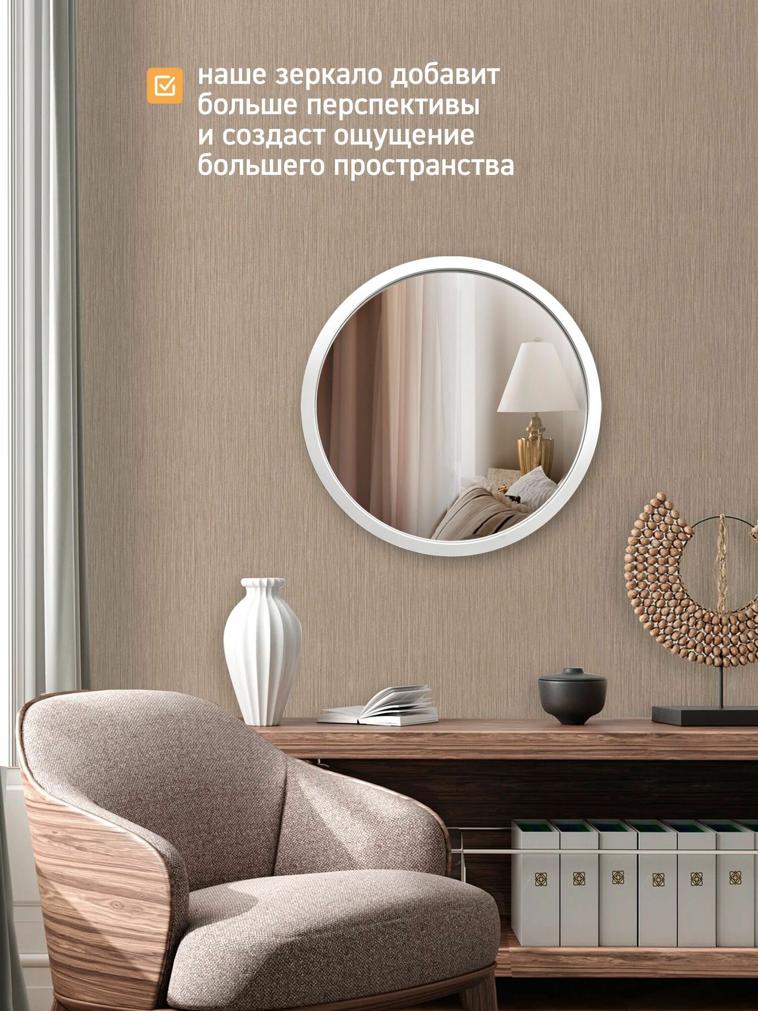 Зеркало Postermarket "Рей", круглое, настенное, в раме, цвет : белый, 70х70 см