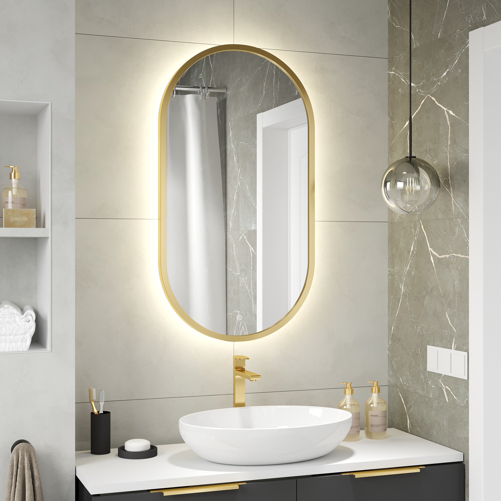 Отзывы на Зеркало в золотой раме 90х50, для ванной с тёплой LED-подсветкой, сенсор с диммером, класс защиты IP44 Max Mirrors